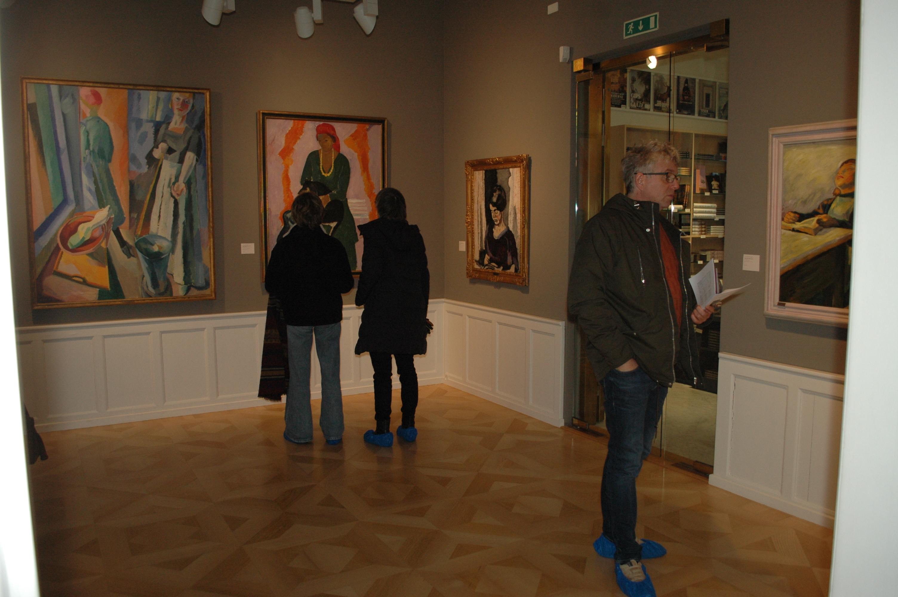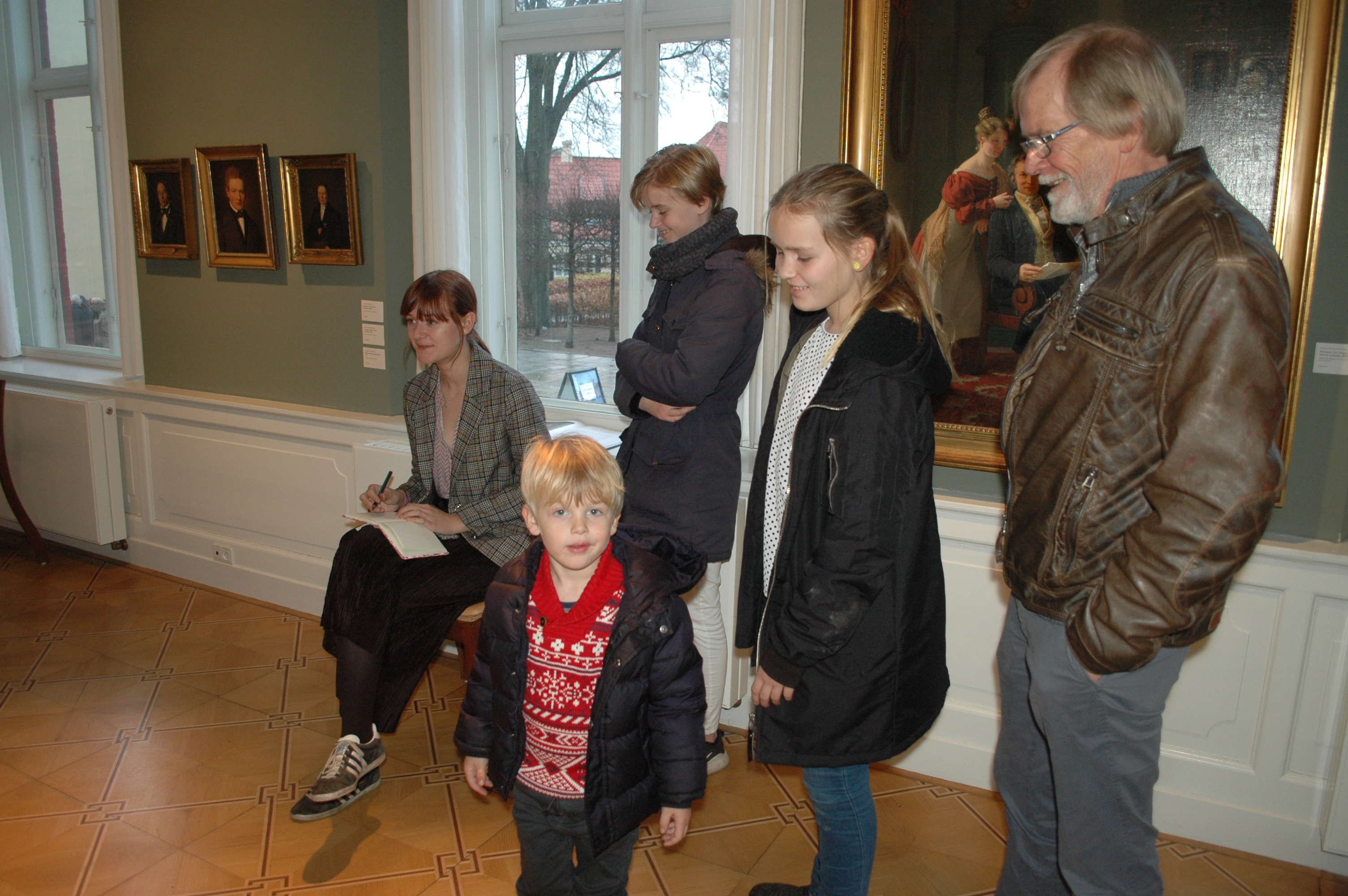 Blandt dem var yngste skud på stammen, Aksel, der nød de store sale og smukke billeder, mens et andet barnebarn, Emma, var travlt optaget af at tegne et af de udstillede skulpturer.