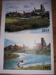 Nederste foto fra 1965 viser tydeligt, hvordan åen øst for ringvejsbroen har set ud, og øverste billede taget sidste år viser tydeligt, hvordan både Ribe Å og Hjortvad Å’s udløb i Ribe å er ved at blive lukket af bevoksning.