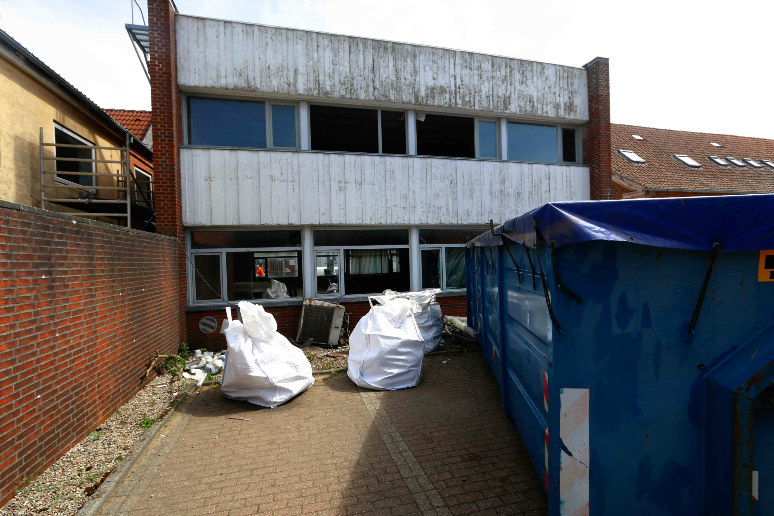 Det er firmaet Haboe Aps fra Hemmet, som står for dette arbejde – og de ansatte arbejder i hvide dragter med alle sikkerhedsmæssige foranstaltninger, når muligheden for at støde ind i asbest og / eller malede overflader indeholdende bly.