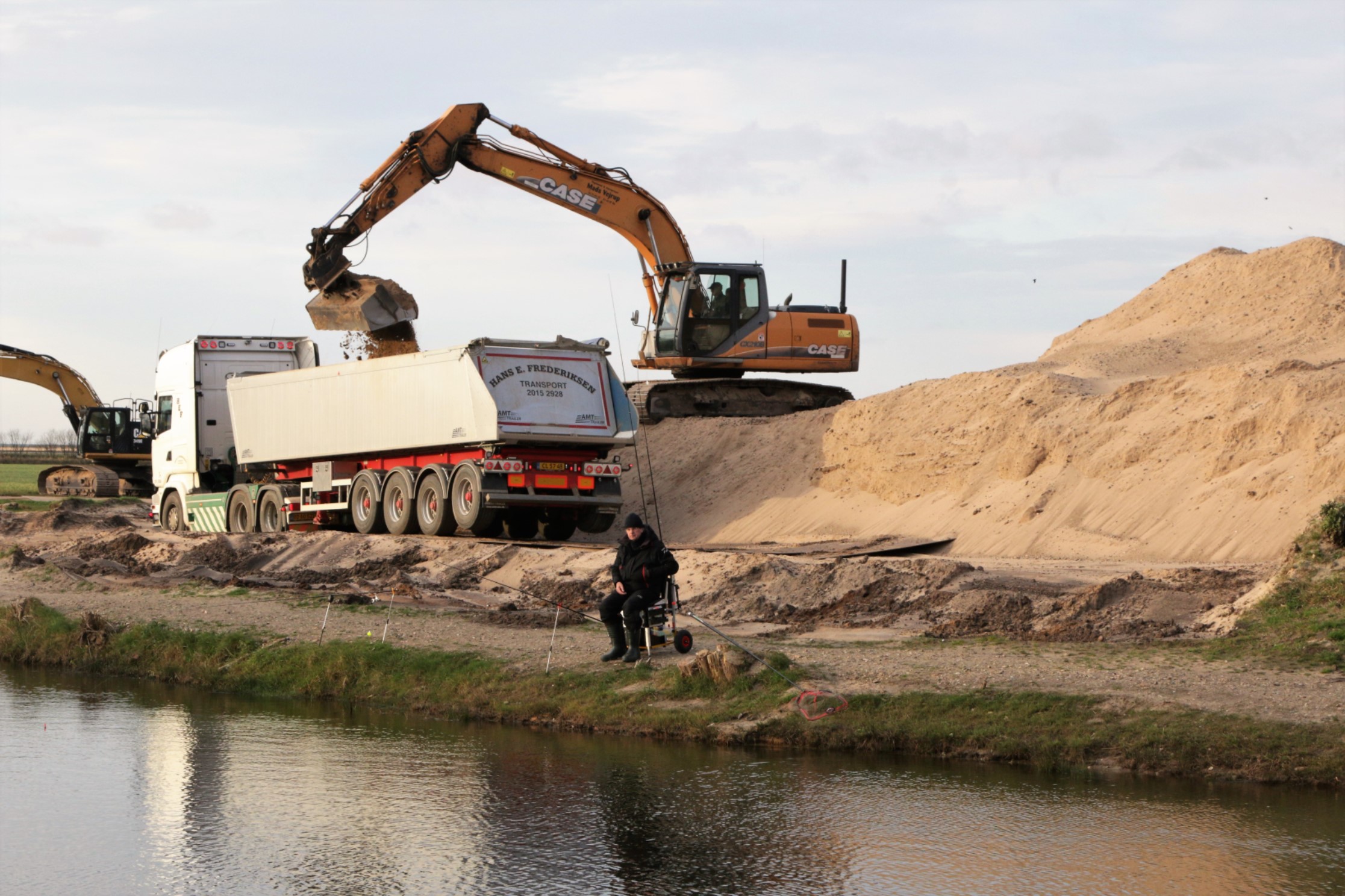 Sandet graves på området syd og vest for de nuværende fiskesøer ved Storkesøen – og som en af chaufførerne kunne fortælle, så det planen, at søarealet skal udvides.