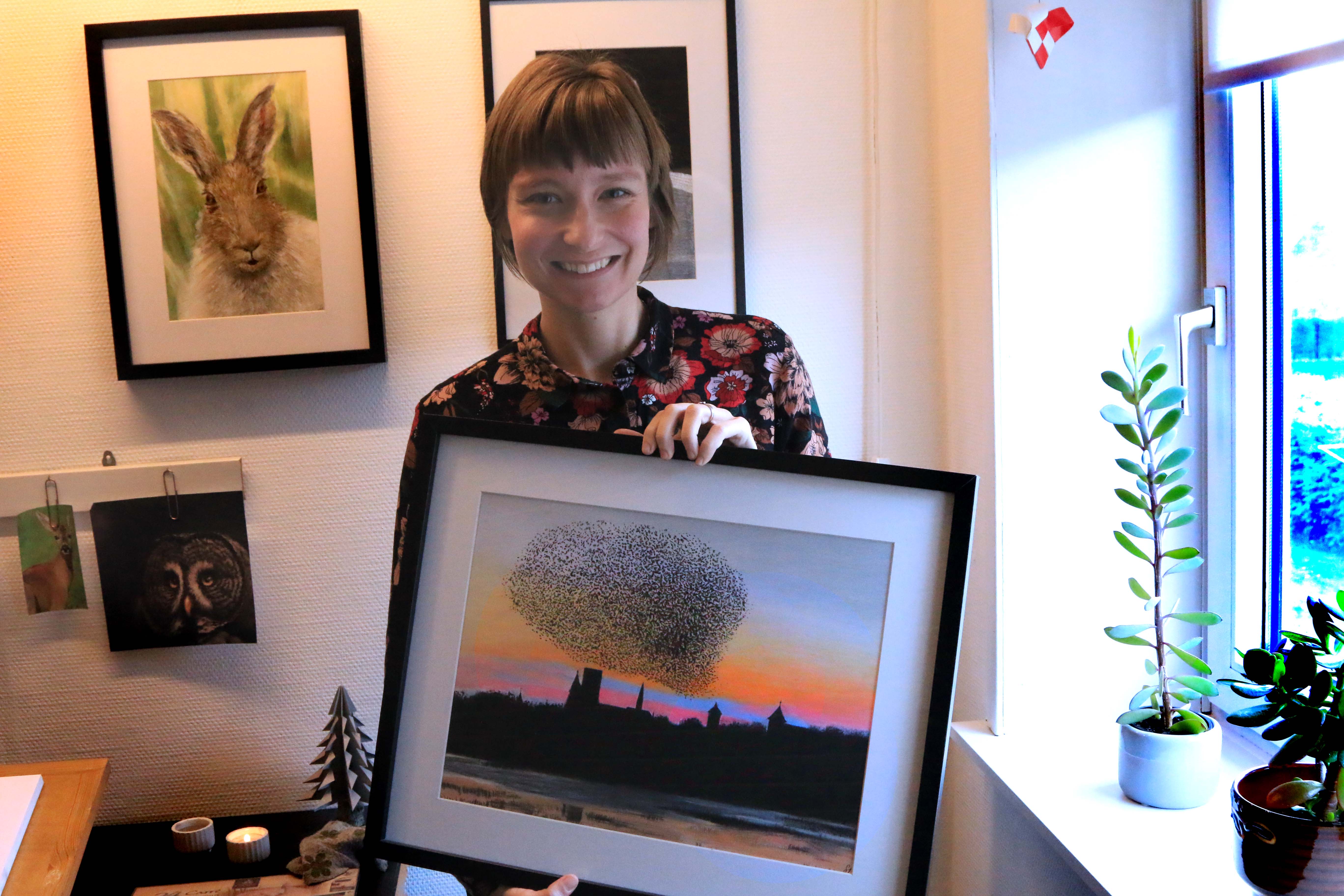 Bopælen i Roager – lige uden for byskiltet på Lundsmarkvej – er ideel, når man elsker naturen og roen – og bruger disse elementer som inspiration. På visitkortet er der en tegning af en hjort – og hertil siger Sanne: ”Rådyr har jeg især været fascineret af – de er inspirerende for mig – ikke mindst da, rådyr altid har været tæt på min forældres marker.”
