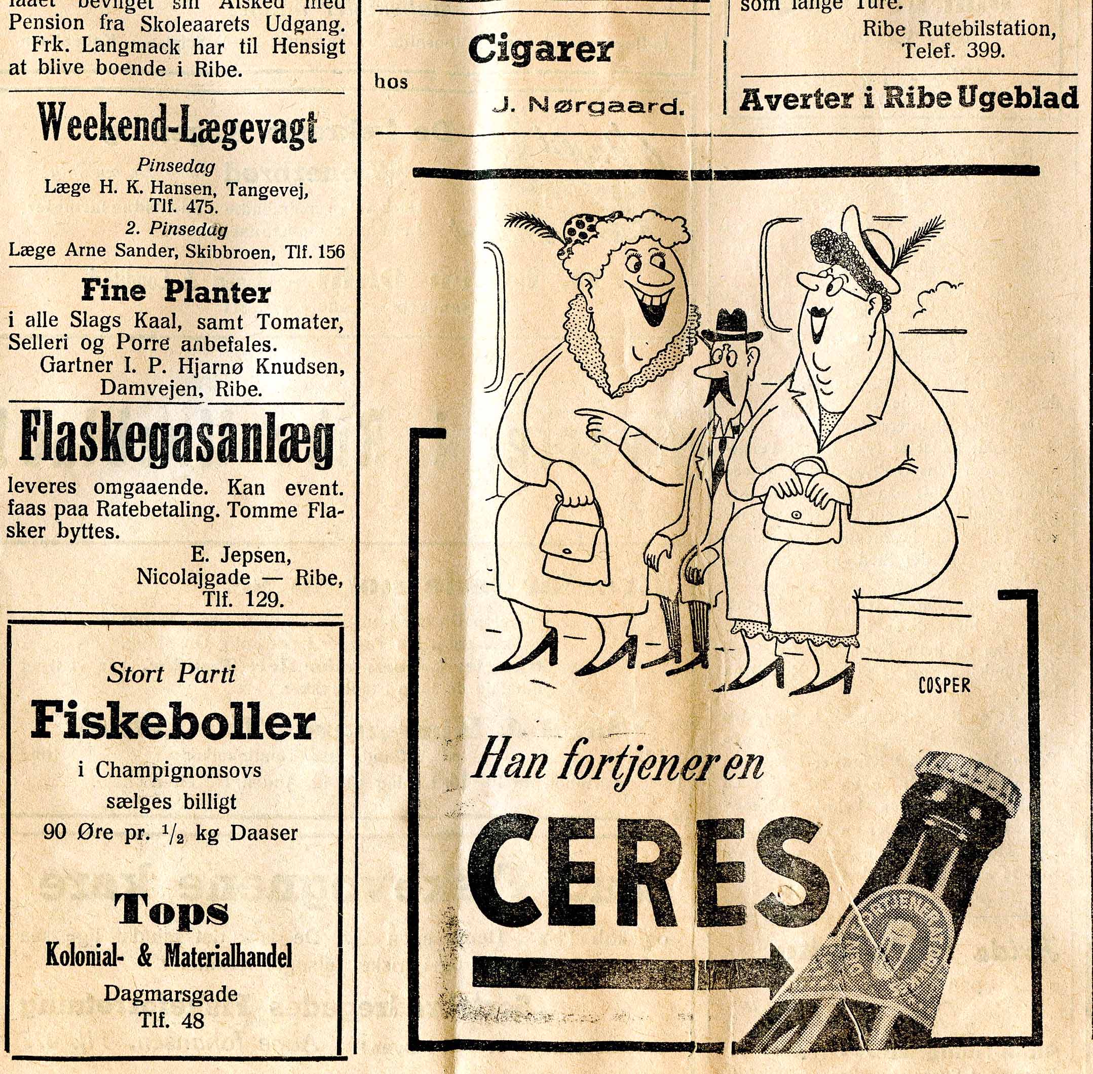 Sådan kunne annoncer se ud i Ribe ugeblad i 1950. Måske er nogen af navnene i annoncerne kendte, følg evt. op på vores Facebookside med en kommentar.