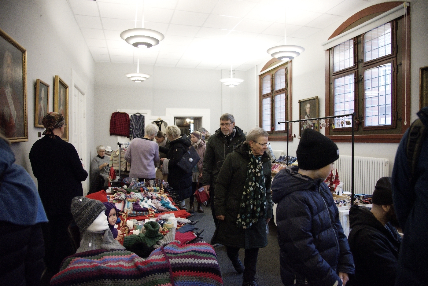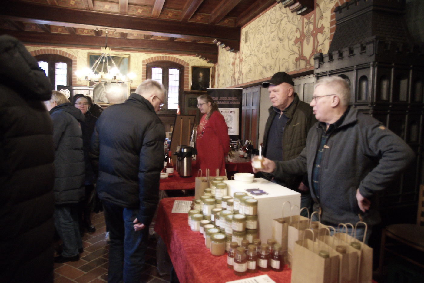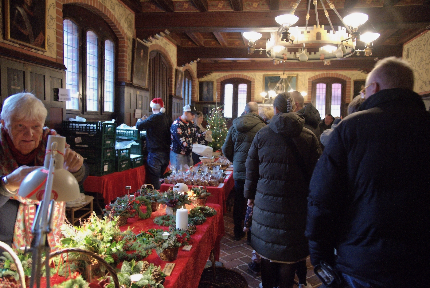 Der var kø ved indgangen og trængsel indenfor på Det Gamle Rådhus i Ribe lørdag op mod middag. Her blev afholdt julemarked. Glade, nysgerrige turister, ripensere og ribeborgere smilede til hinanden, mens de ventede, gav plads og bevægede sig langsomt gennem de smukke middelalderrum, der i dagens anledning var fyldt med boder af alle slags.