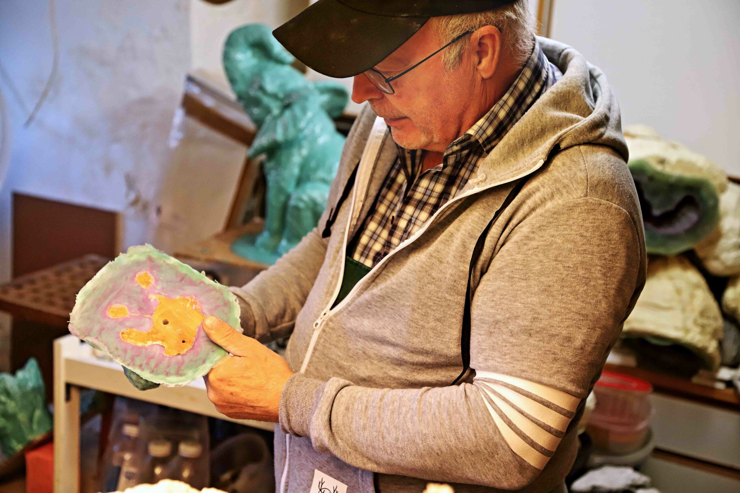 Et besøg i kælderen giver et indblik i en spændende verden, hvor Bjarne dels laver forme af gummi og silikone samt støber mindre figurer i beton.
