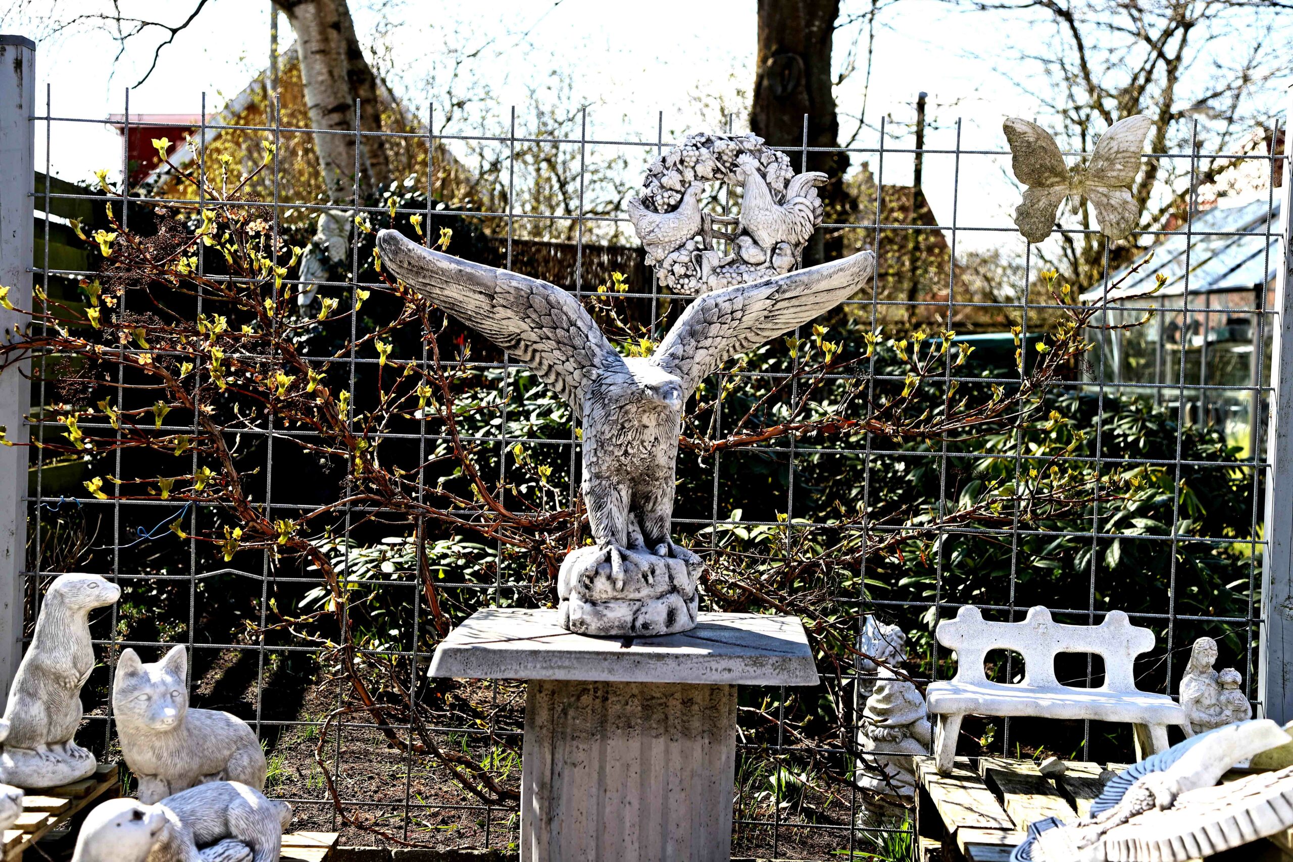 – Jeg er blevet lidt bedre til at begrænse mig, fortæller Bjarne, der har omkring 400 figurer samt alle dem, som han laver forme efter. – Jo, det er mange, men der er også gang i butikken, hvor jeg har kunder og kontakter i det meste af Europa – og får sendinger hjem fra Tyskland og Polen. Det handler specifik om de tunge figurer – fx vejer ørnen 216 kilogram.