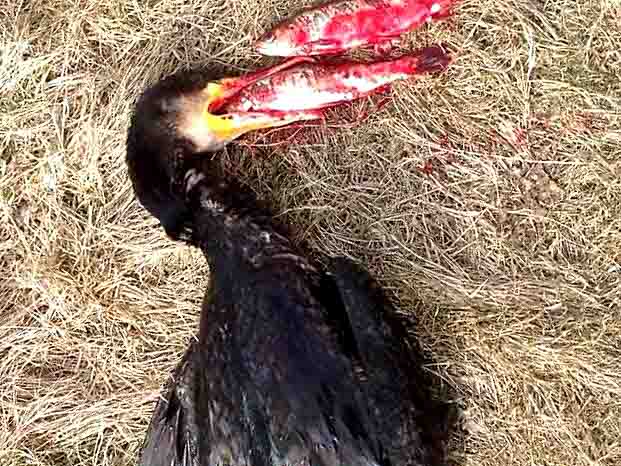 RYK IND RIBE har fået følgende beskrivelse fra Gert Mikkelsen, der også har leveret en række mere eller mindre skræmmende fotos fra dengang, hvor han måtte skyde skarven.