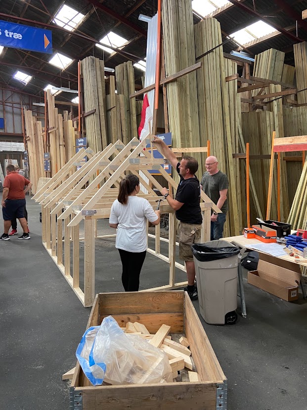 I perioder er eleverne ”Hans On” i besøgene, som da Erhvervsholdet fra Ansgarholdet forleden besøgte Damhus Tømrer og Snedker i lokaler, som STARK stillede til rådighed. Eleverne byggede en hel mini-tagkonstruktion i grupper. Allan fra Damhus Tømrer & Snedker havde virkelig forberedt sig grundigt på mødet med holdet, så eleverne fik en praktisk indsigt i, hvad det vil sige at være tømrer, og matematikken kom i den grad i anvendelse. Selv om ikke alle dernæst skulle være tømrer, så fik alle respekt for faget, og det er meget værd.