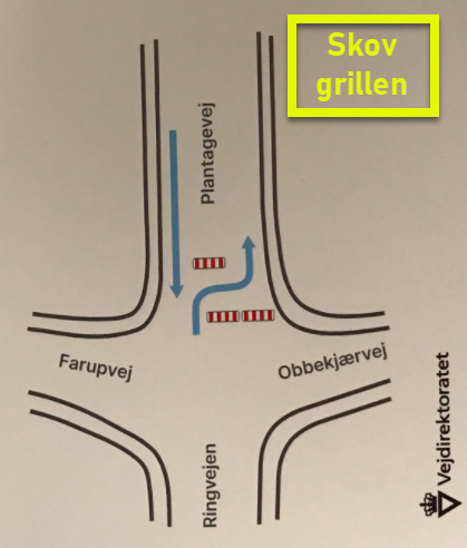 Tegning fra Vejdirektoratet med Skovgrillen indtegnet.