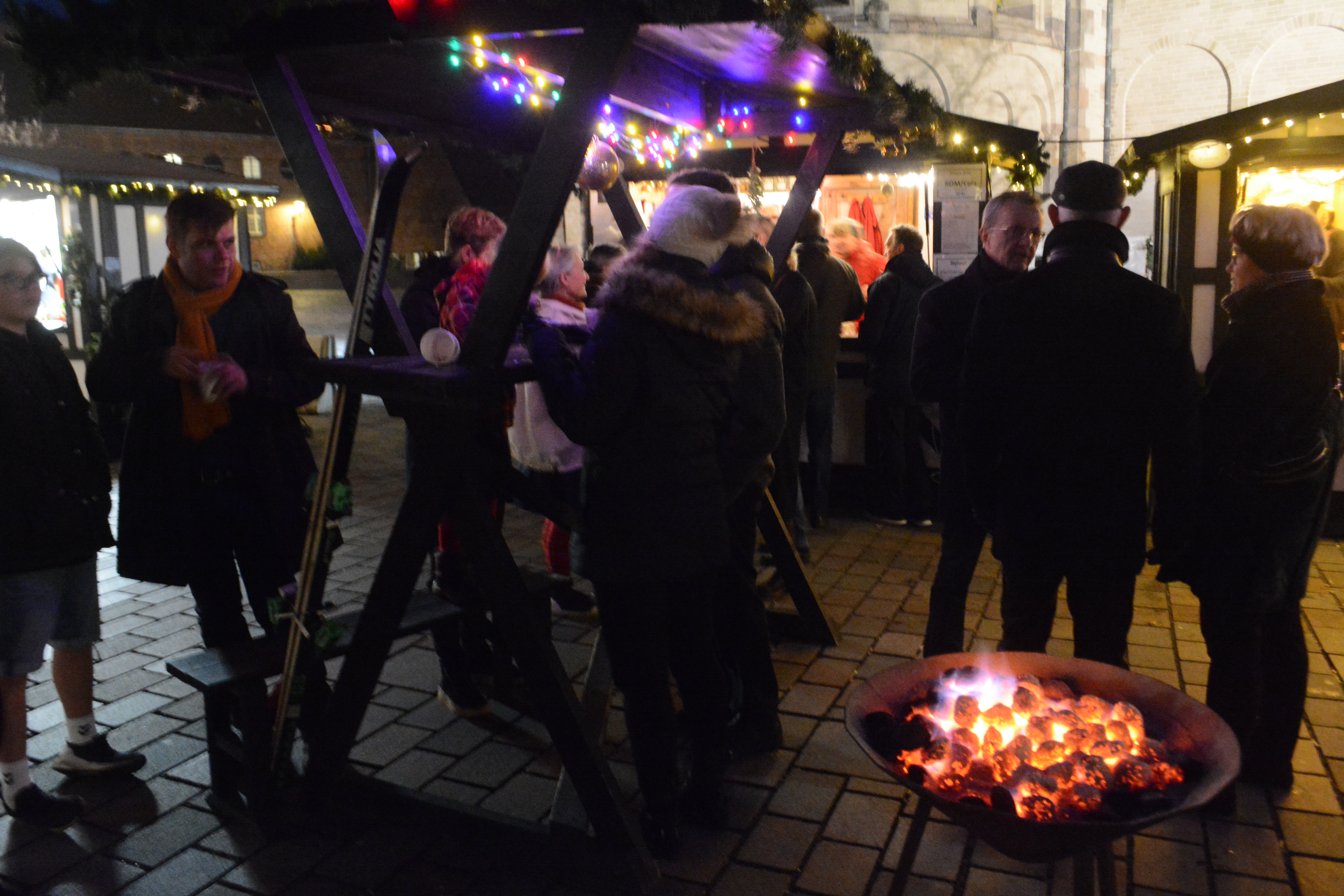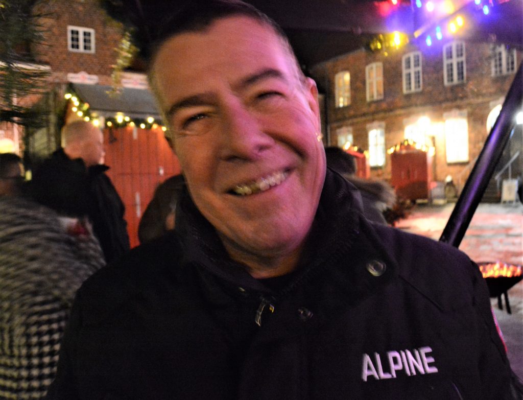 Der var rigeligt med ”glühwein” med diverse muligheder for tilsætning, og Søren Schmidt fra Skiltefabrikken leverede musikken. Torvet i Ribe er et forblæst område, men når man krøb i ly af julehytterne, eller når man søgte hen til de varmende bakker med glødende trækul, var kulden og blæsten til at holde ud.