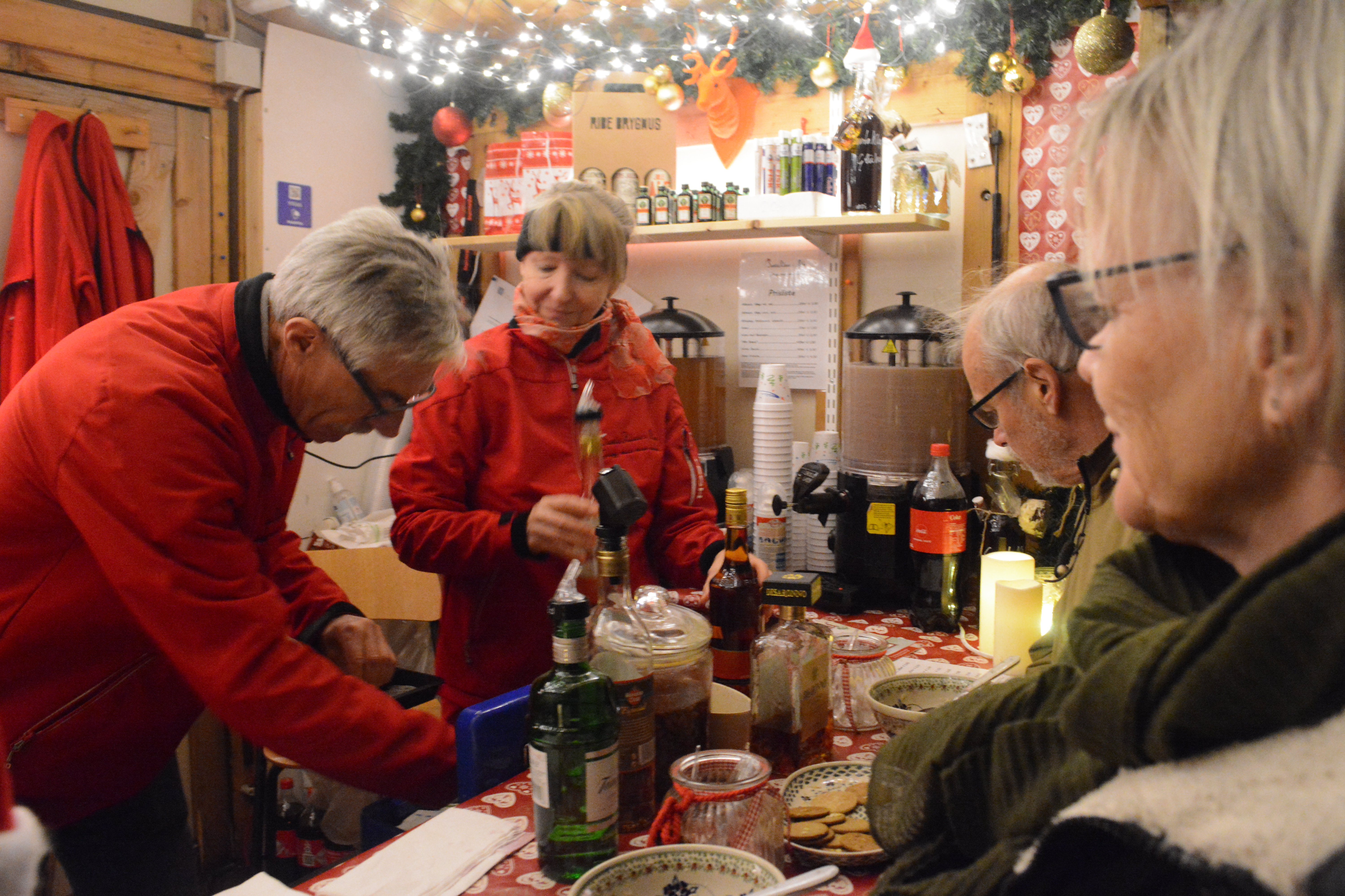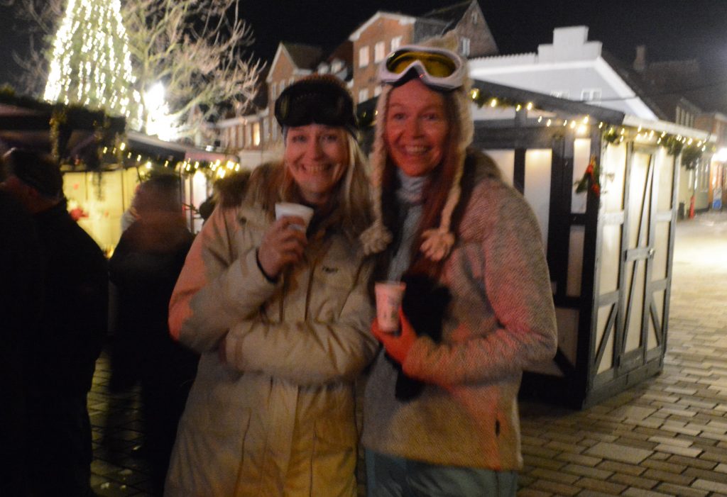 Det eneste, der manglede, var sneen – og så måske en enkelt lille skibakke. Men ellers var stemningen høj og humøret godt, da der denne fredag aften var ”afterskiing” i julelandsbyen på Torvet i Ribe.