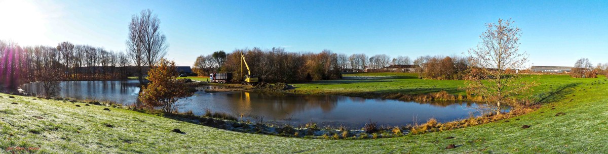 Sådan er det også med søen ved den tidligere amtsgård i Ribe. Here var søen efterhånden ved at lukke til af bevoksning. For nogle dage siden var store maskiner i gang med oprensningen af søen. Det betød store mængder affald, som blev kørt bort på flere lastbiler, og i dag står søens overflade igen blank og ren til glæde ikke mindst for mange ænder, der har fundet tilbage til dette vandhul, som vegetationen efterhånden havde fortrængt dem fra.