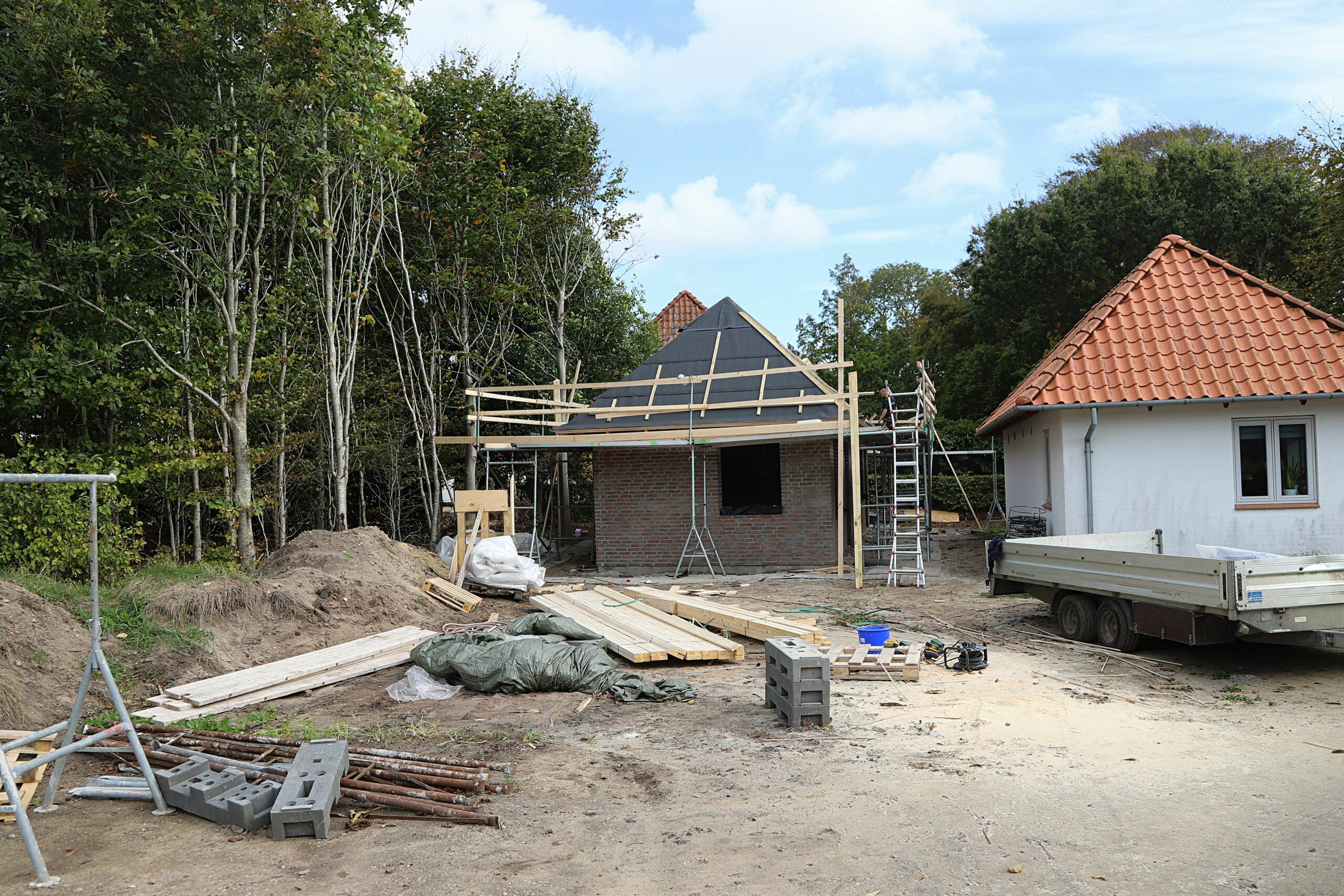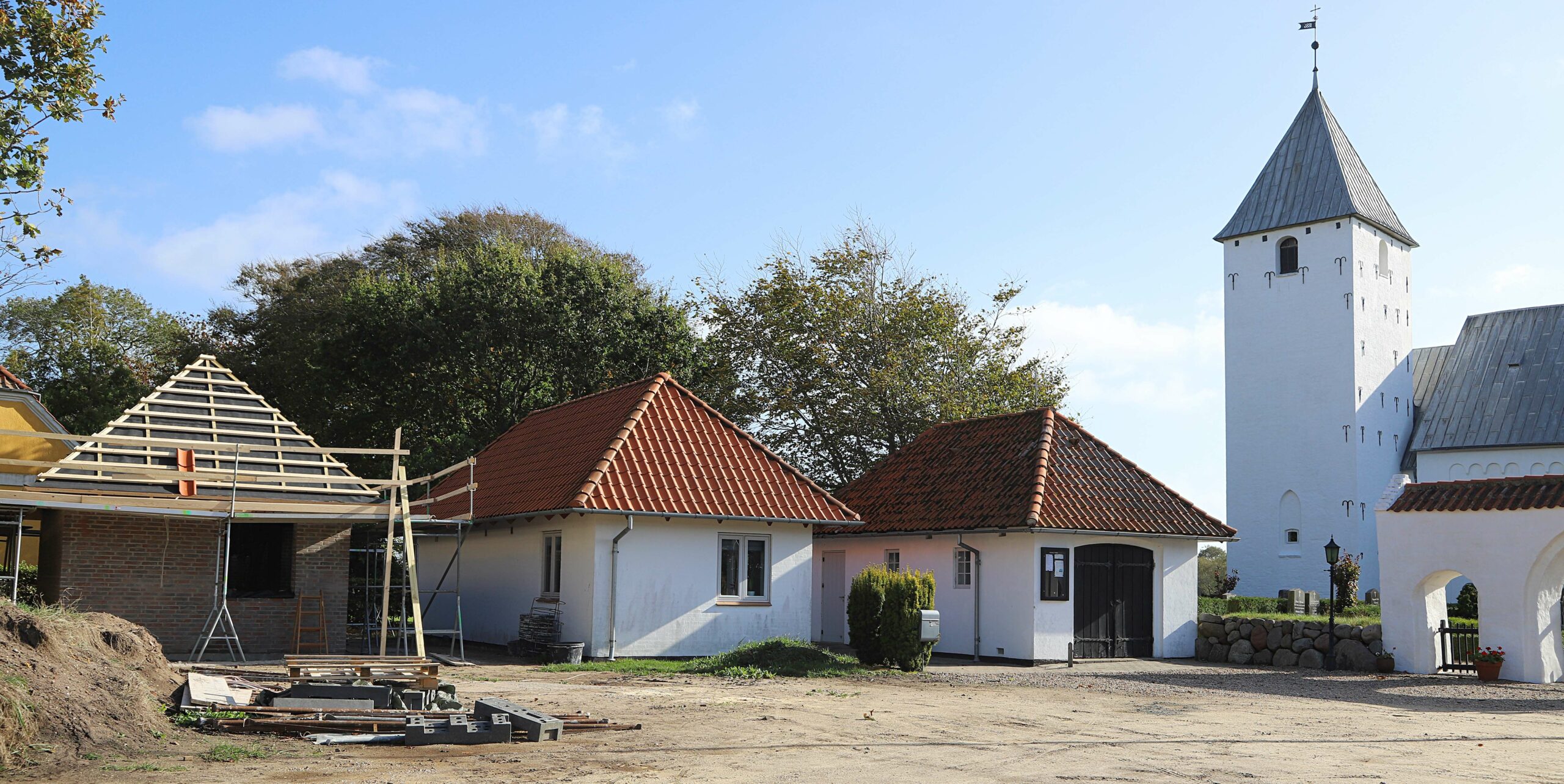 Tre på stribe – den tredje bygning opføres for tiden ved Vilslev Kirke af CM Byg fra Gredstedbro. Graver Jørn Friis glæder sig til, at bygningen, der i øvrigt kommer til at ligne de to andre, bliver færdig, da den kommer til at indeholde bla. værksted, rum til redskaber og kontor. I dag har graveren sit depot i stalden på præstegården, så hverdagen bliver meget lettere for medarbejderne på kirkegården. Graver Jørn Friis fortæller til RYK IND RIBE, at han i dag har kontor i bygning 2 – og et lille værksted bag kapellet.