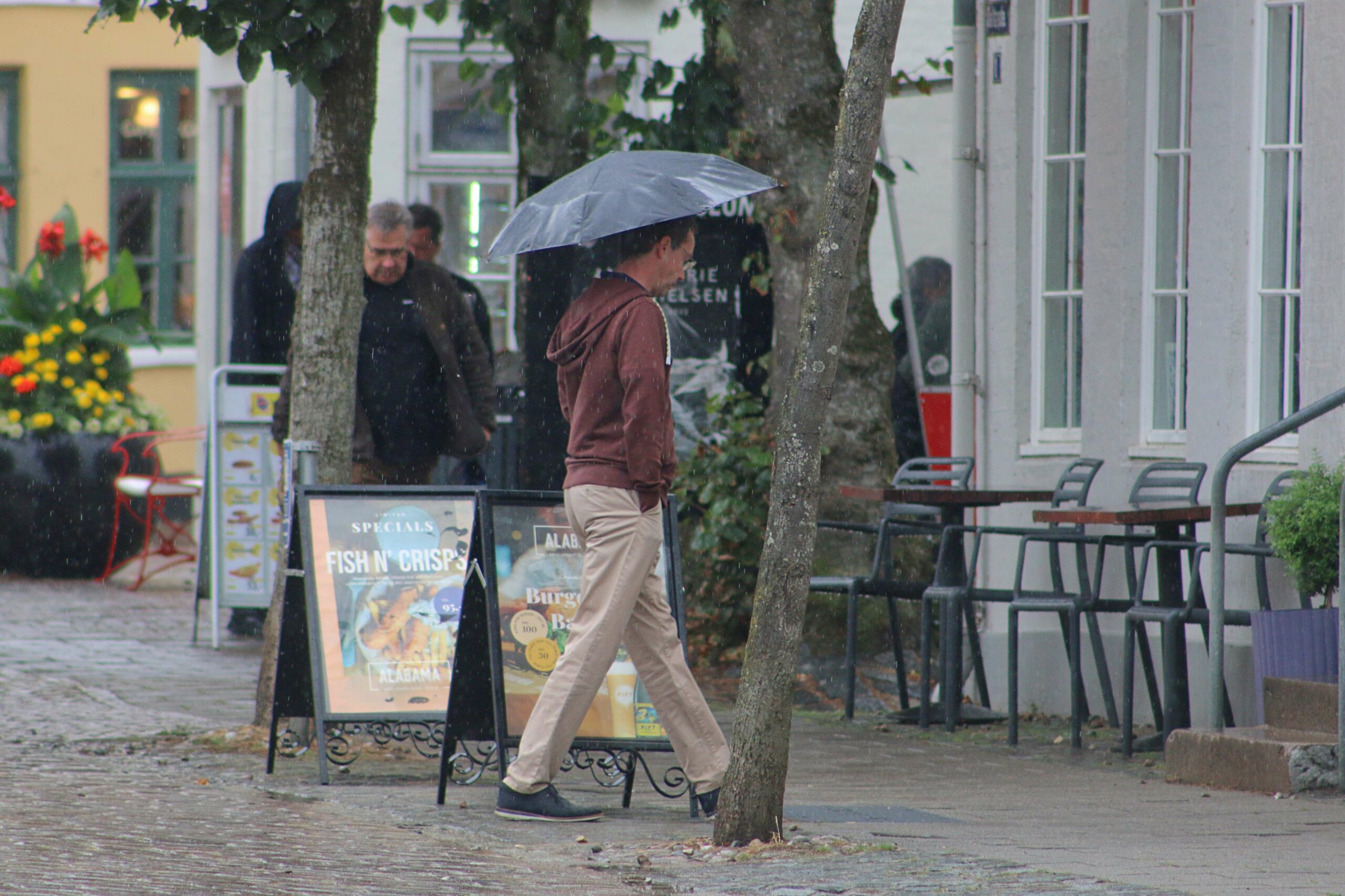 Da regnen i flere perioder væltede ned over byen i denne uge, så var gode råd dyre. Det har jo ikke været normalt med regn i denne sommer, som har sat adskillige tørke rekorder. Mange ansatte som fx. hos Matas kunne stå alene i butikken og iagttage de tunge dråber, mens en lærer havde tænkt kreativt i den unormale situation. NORMAL i Saltgade havde løsningen: engangsregnfrakker – og så afsted videre ud til byens seværdigheder.