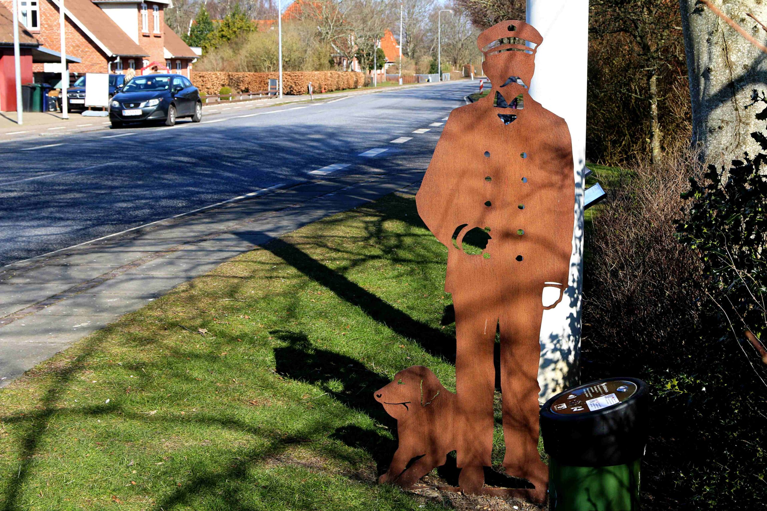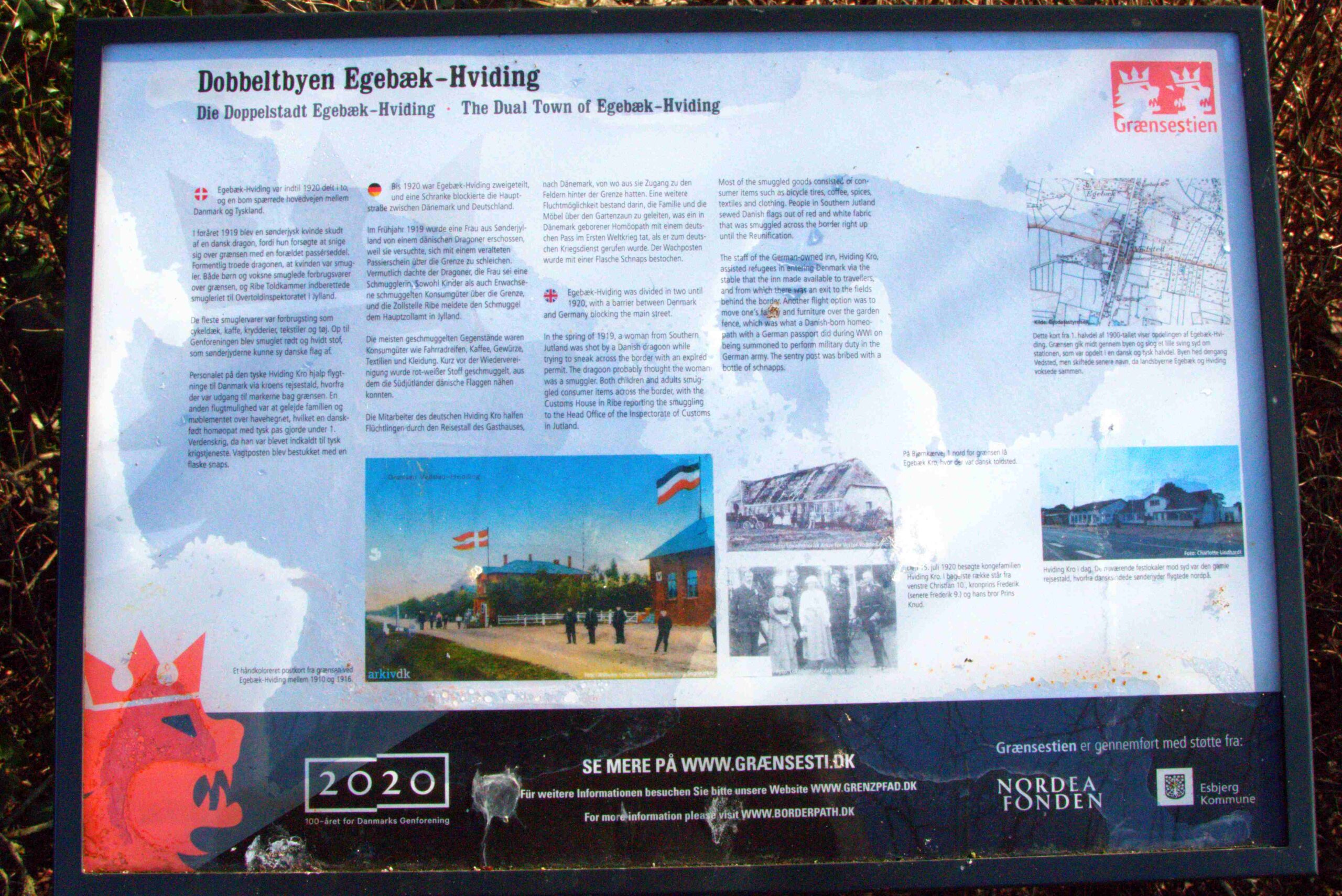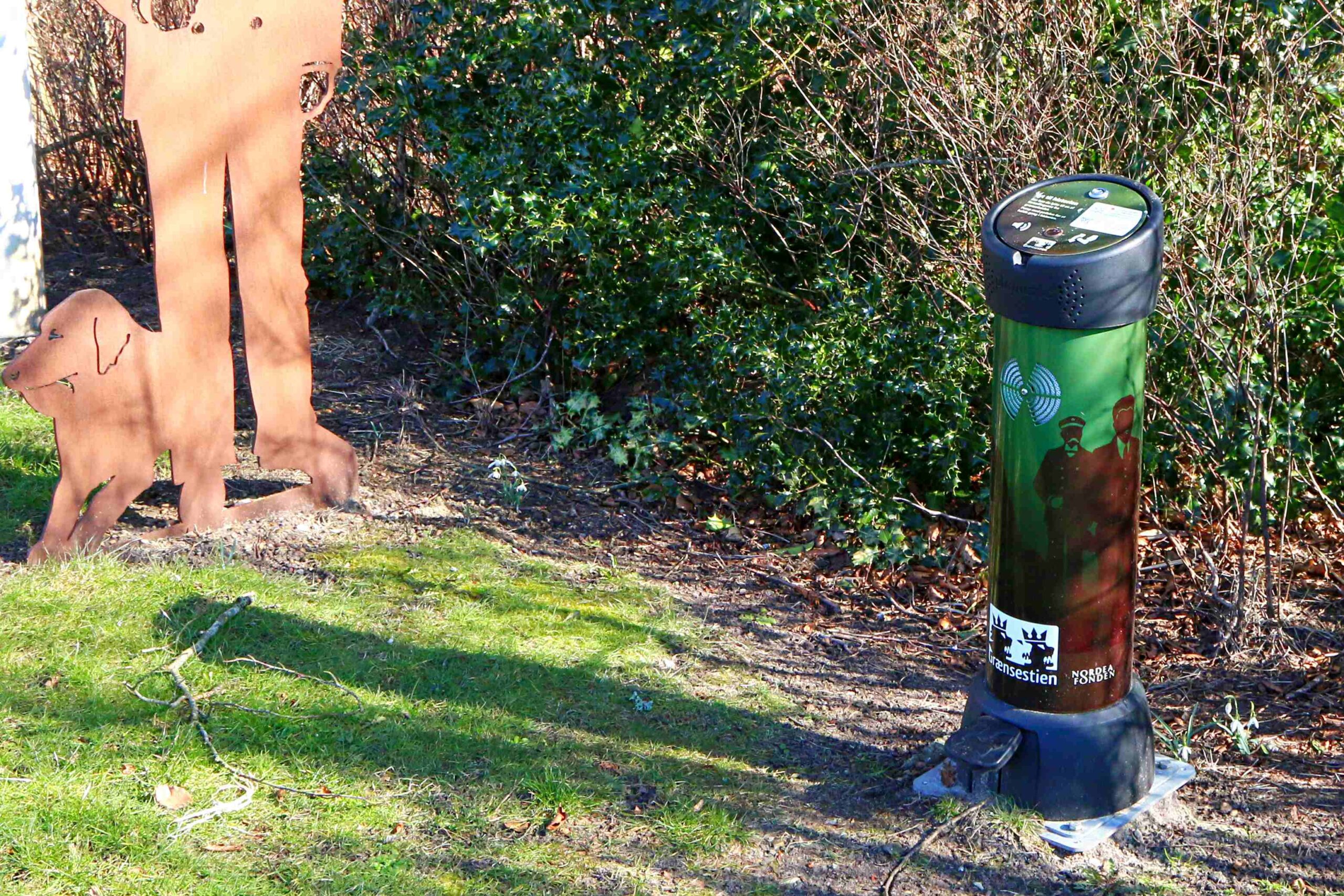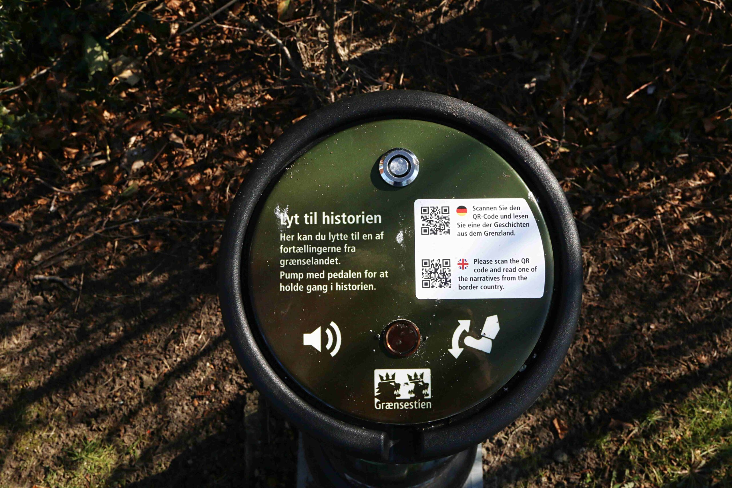 – Mange bilister nedsætter hastigheden gennem Hviding, når de på afstand får øje på grænsebetjenten, fortæller en lokal beboer, som har oplevet, at der trædes lidt ekstra på speederen, når de så har opdaget, at der er tale om en rustpatineret figur ved en af grænsepælene. Vil du vide mere, så besøg standeren – og vær klar til at pumpe strøm på anlægget, så fortællingen kan komme ud gennem den indbyggede højtaler. Og du skal pumpe en del gange, før du har hørt hele beretningen. Stopper du op for at lytte – og strømkapaciteten falder til 0, så skal historien genstartes forfra. Og på ny må der pumpes 🙂