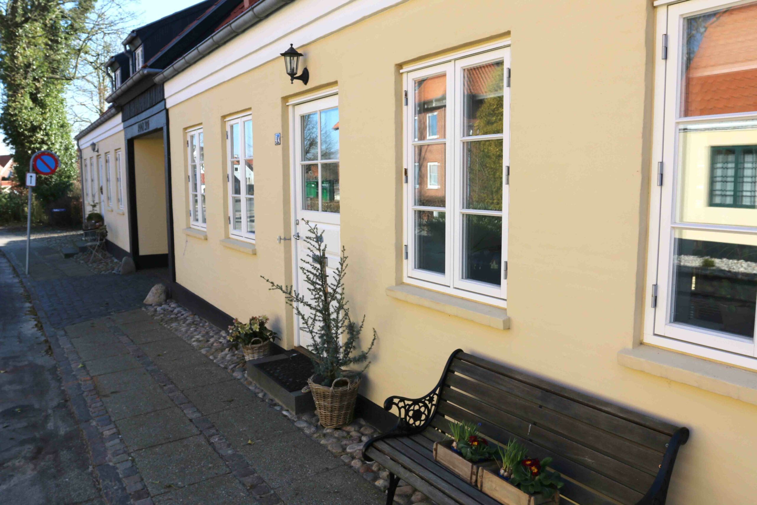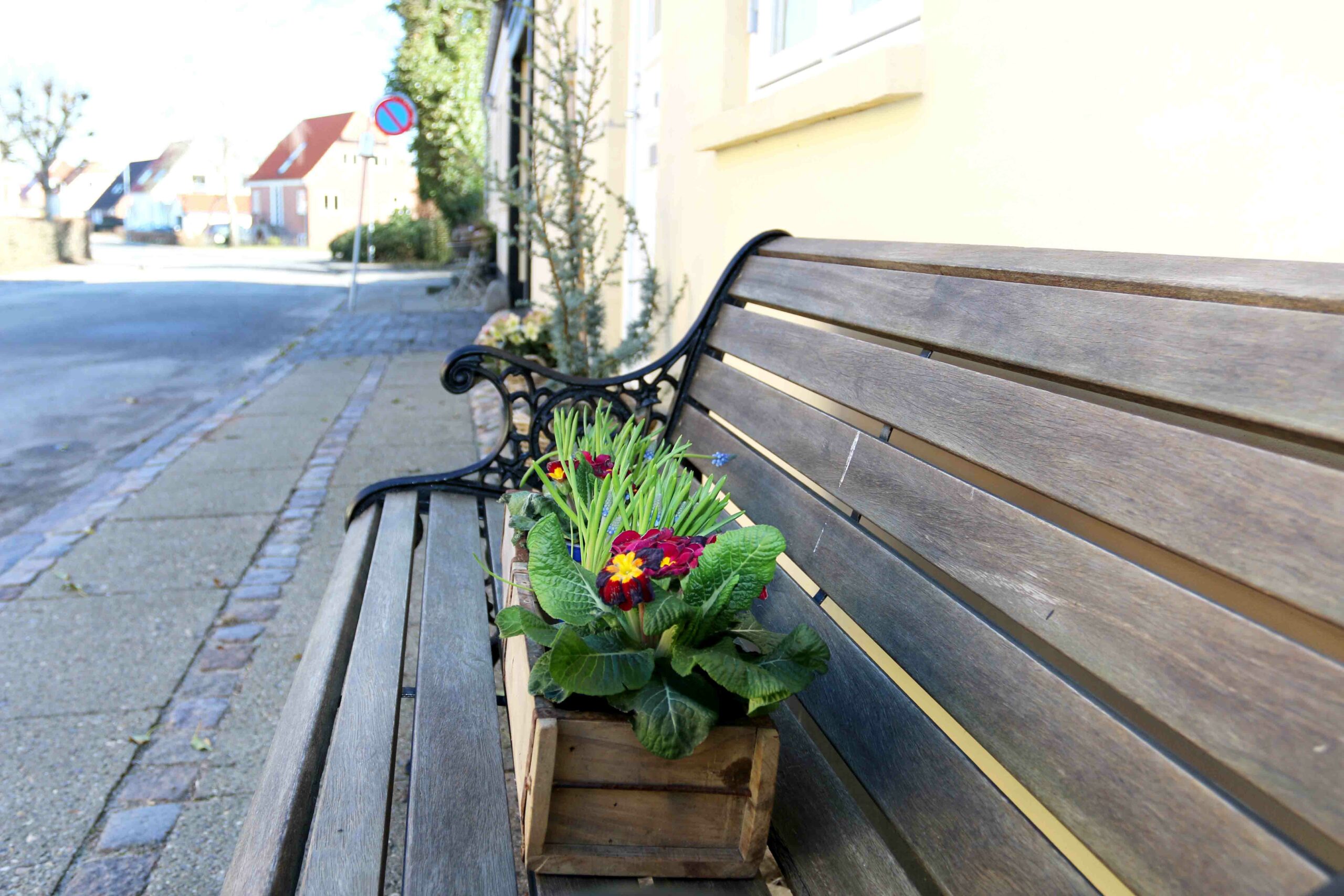 Mens vi alle venter på foråret, så er de første forberedelser i gang ved den prisbelønnede ejendom i Tvedgade. På en bænk står forårsblomster, mens en anden har en inspirerende komposition anbragt i en kurv. Den vellykkede nybygning har et spændende haveanlæg, som med længsel venter på foråret. RYK IND RIBE ser i hvert fald forbi om nogle måneder.