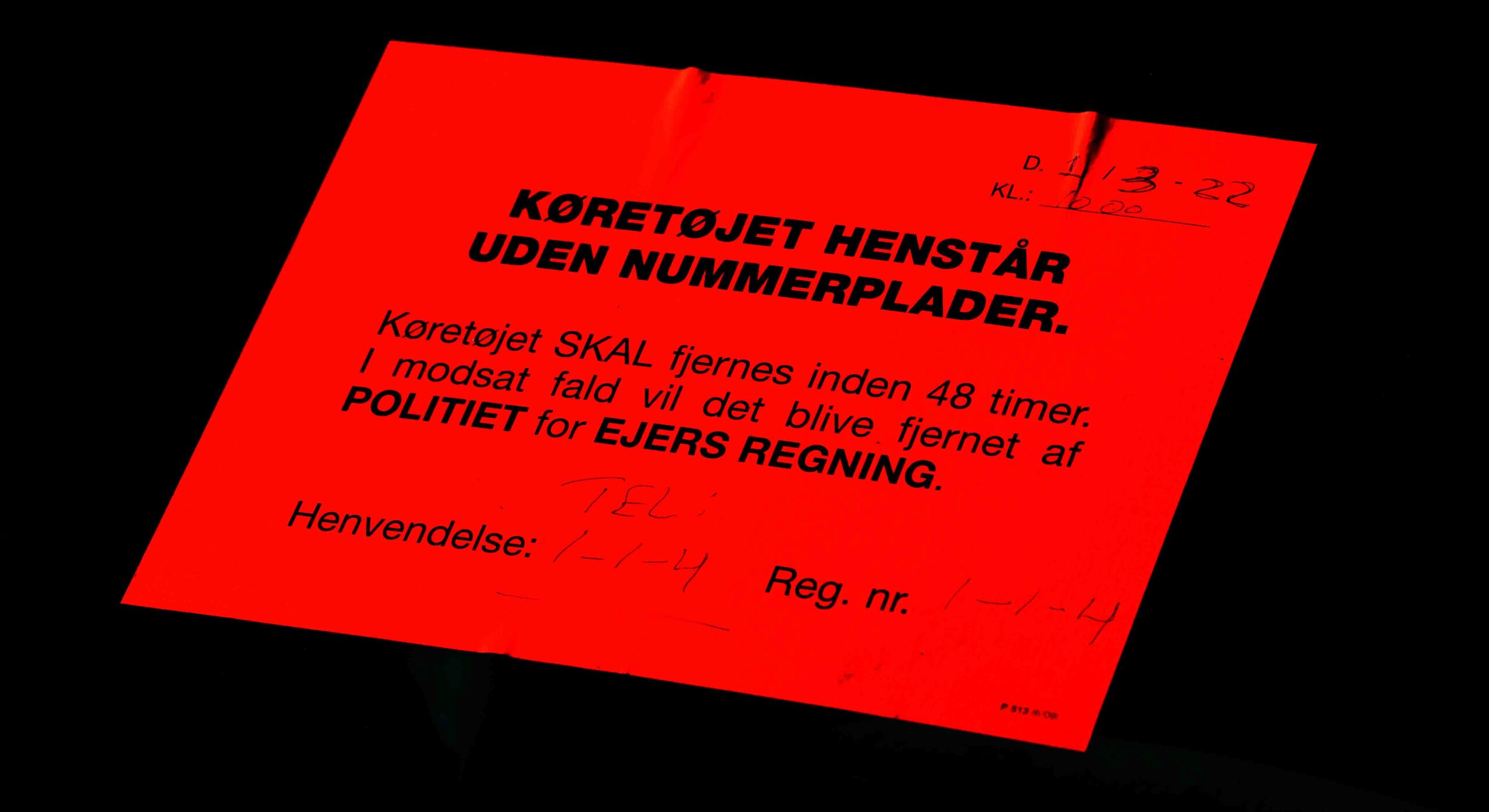 Sedlen er dateret 1.3.2022 – og 1o. marts var bilen stadig ikke fjernet. Hvis man ikke mener noget med 48 timers reglen, så ….