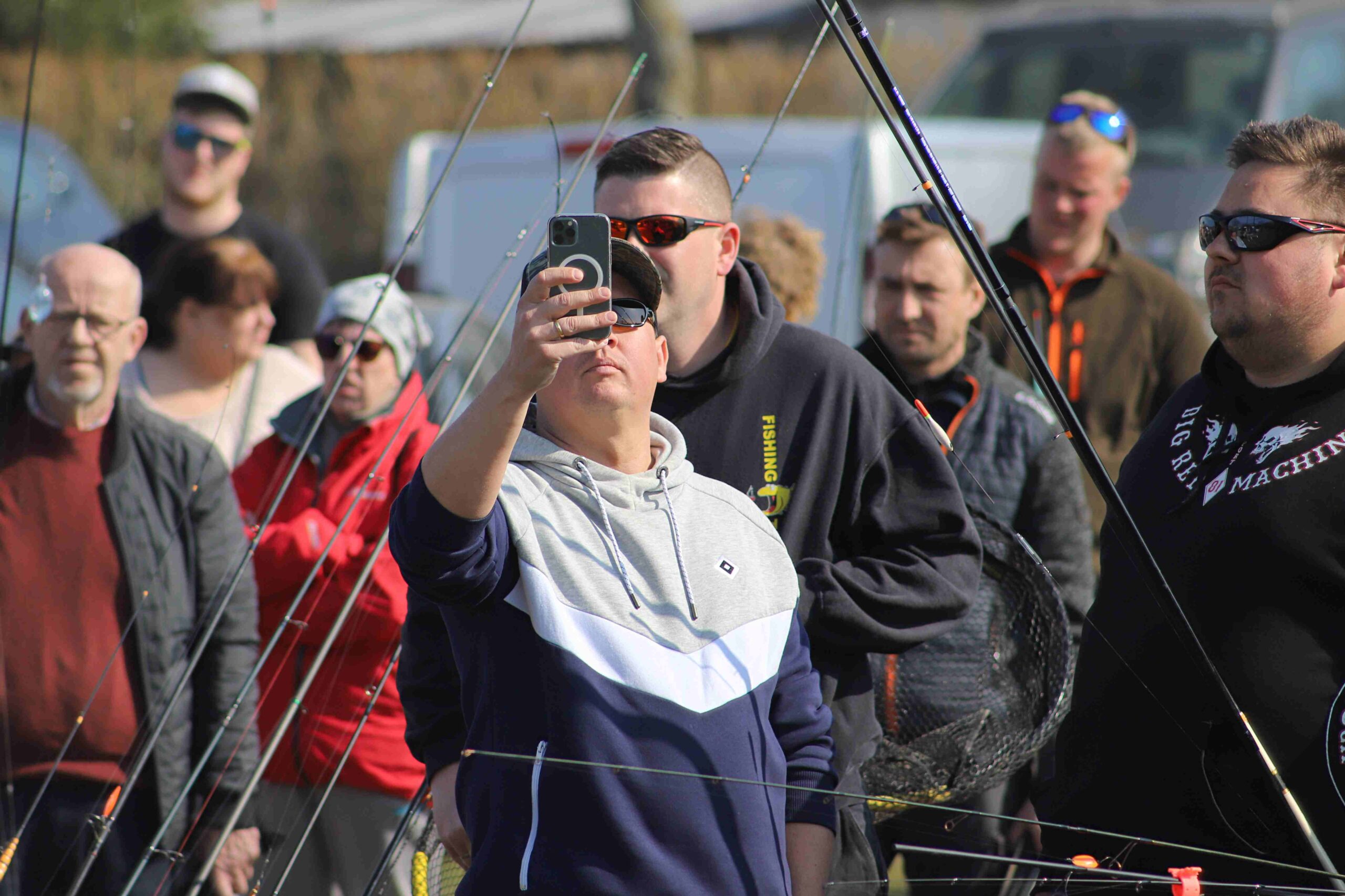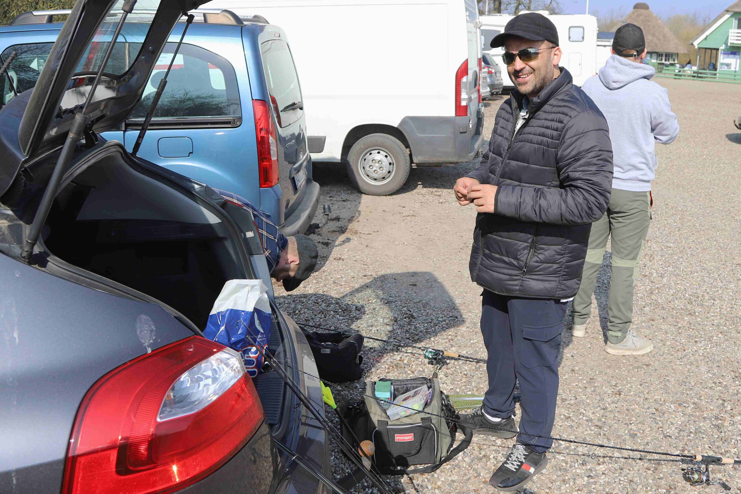 Sacha med kasket og korslagte arme besøger lørdag Storkesøen sammen med tre kammerater: Alex, Kevin og Jan. – Jeg er kommet her gennem 18 år – og det er langt det bedste fiskested i Nordeuropa, lyder fra Sacha, der på sin vej fra Cuxhaven samlede sine snakkende venner op – og de har humør: – Vi overnatter i HOBBY-campingvognen – og får snakket og hygget. På spørgsmålet om koner, så fortæller Sacha, at de er med på rejser til strande, hvor der kan slikkes sol. Mens udstyret bliver klargjort, får Sacha lige fortalt, at han med en anden gruppe også har været på skiferie. – Jo, jeg har store frihedsgrader til at dyrke mine hobbies, lyder det. Da alle de mere end 300 fiskere får oplyst regler for de tre timers gratis fiskeri, skal Sacha lige have et minde med hjem taget med sit mobilkamera