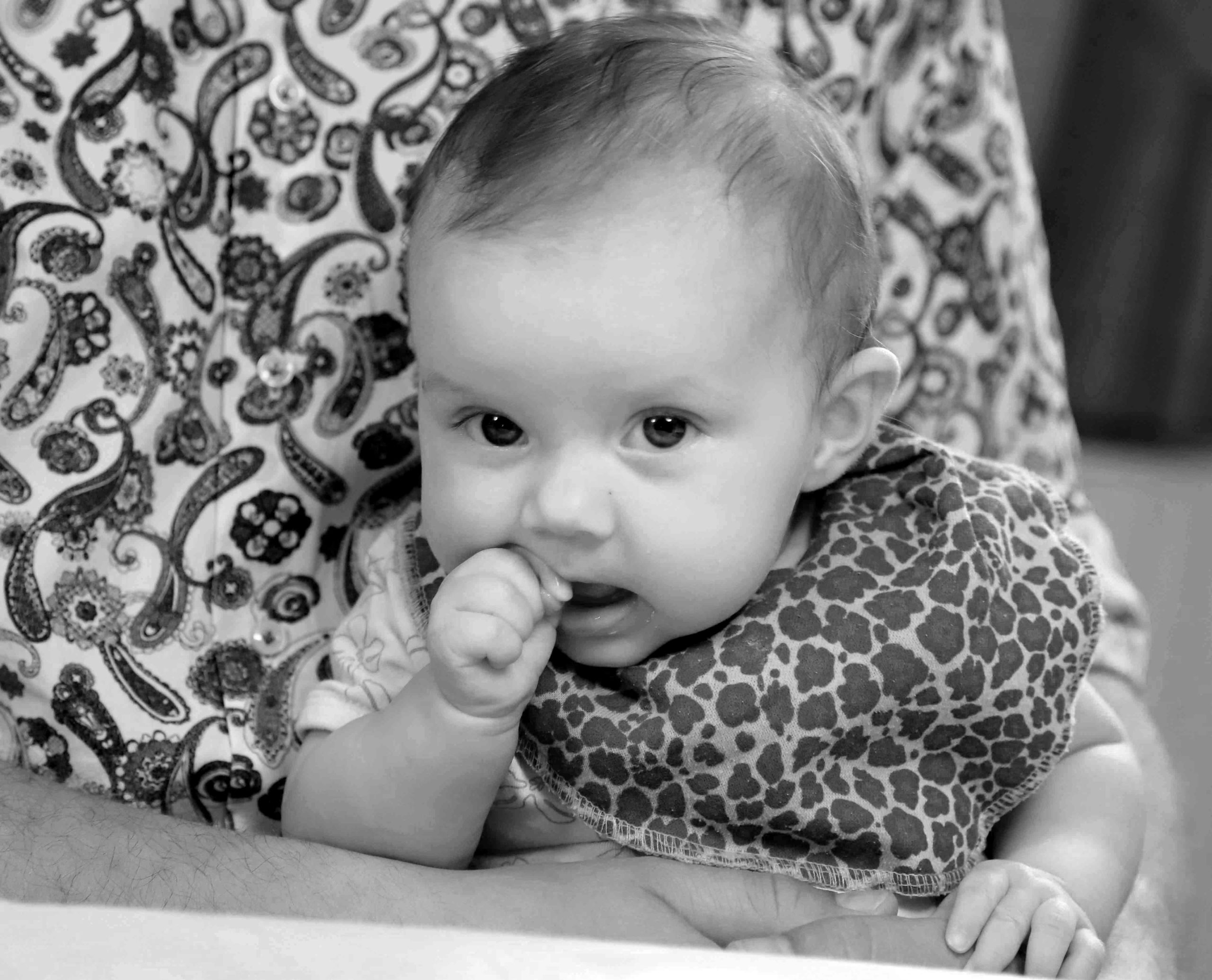 – Alle mænd bør have mulighed for barselsorlov, lyder det fra Ole, som har måttet konstatere, at Benedicte på godt 4 måneder ikke har lyst til at sove igen, efter en lang nats god søvn. – Min datter sov faktisk 12 ½ time i nat – og har normalt en døgnrytme med 10-11 timers søvn, så vi er vist ret heldige, kommer det med et stolt smil fra Ole, som sætter sig med Benedicte ved spisestuebordet til en snak med RYK IND RIBE.