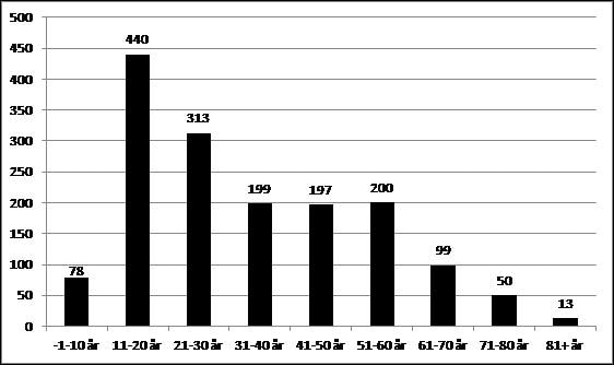 De 21-30-årige udgør 20 procent af de tilskadekomne.
