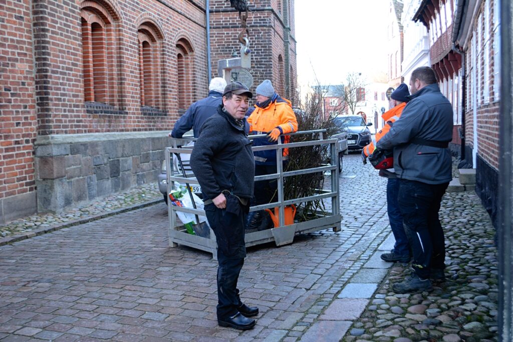 På denne søndag havde Storkelauget i Ribe assisteret af storkeekspert Hans skov valgt at sætte de fem reder i det indre Ribe i stand.