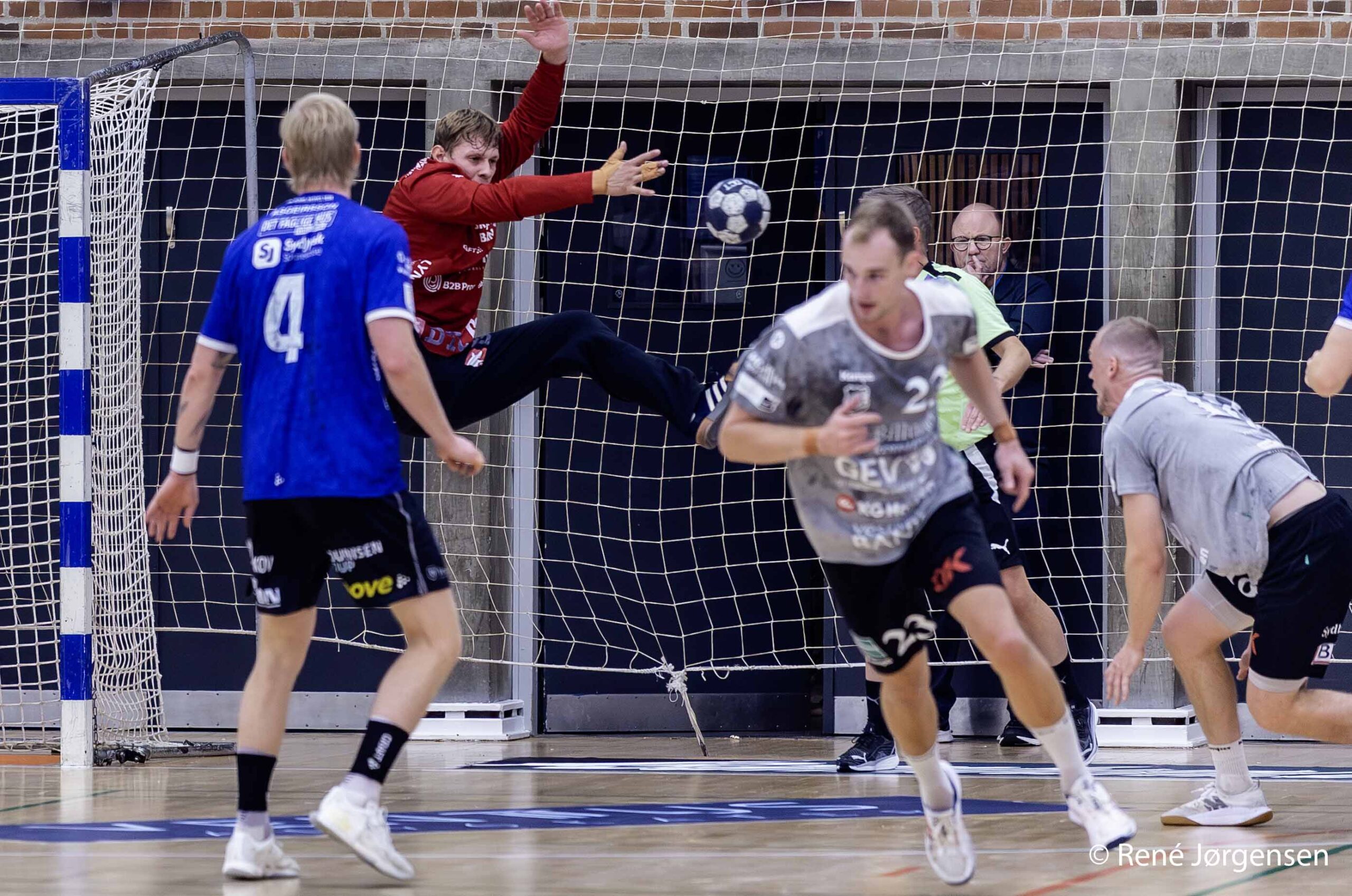 Fine redninger fra de ton REHH målmænd, Her Andreas i aktion, til stor bifald fra bedsteforældrene og resten af hallen. Andreas Haagen stod med hele 47% i de ca. 40 minutter han var på banen
