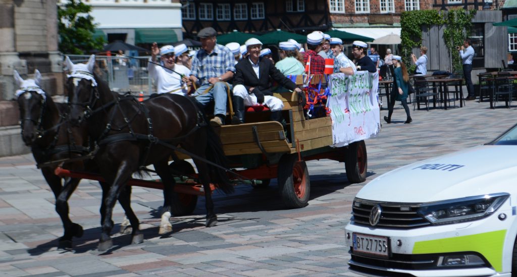 Det var lige, som det skulle være, da godt 200 nybagte studenter indtog Sct. Chatarinæ Torv og springvandet, som med hjælp af lidt sulfo kom til at skumme lystigt.