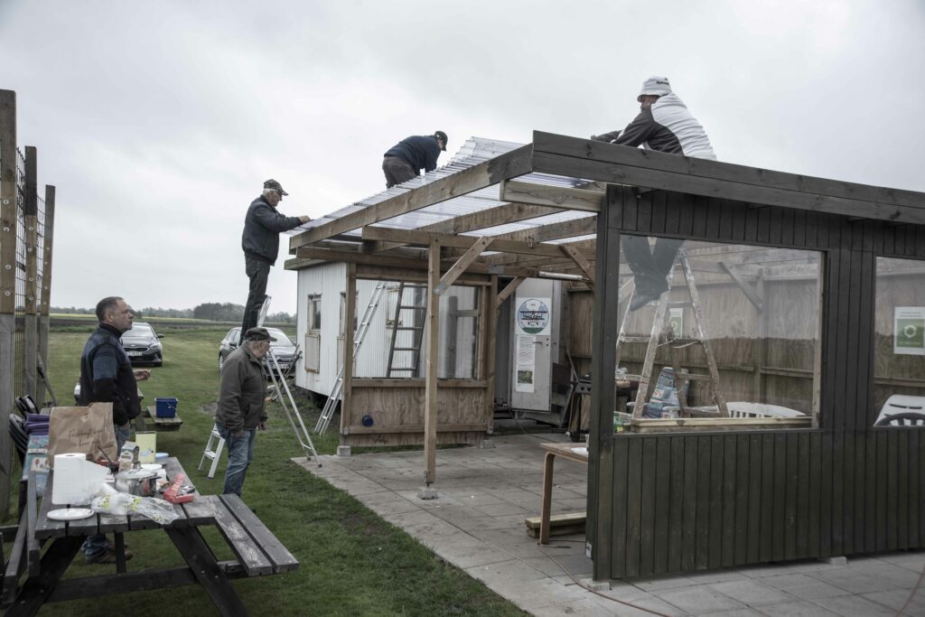 Klubben har været så heldige, at den lokale afdeling af Sydbank har doneret kr. 15.000 til forbedringer på pladsen. Friskt blev der gået til opgaverne, der bestod i alt fra oprydning på pladsen, til at skulle udskifte taget på overdækningen og læhegn omkring terrassen.