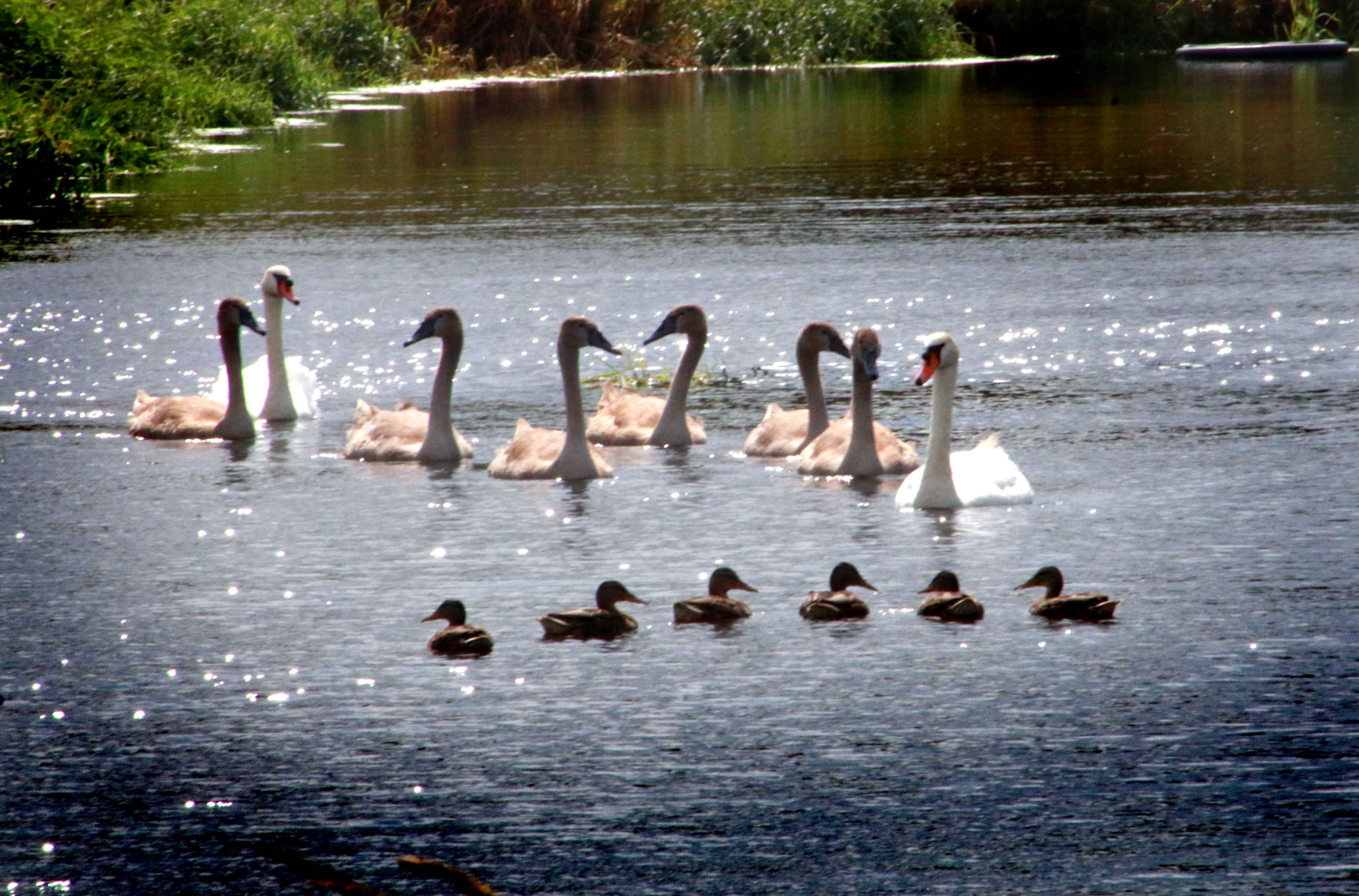 I en lagune i Jedsted Dambrug har et svanepar eneret på ”spisekammeret” – og derfor afviste de ænderne.