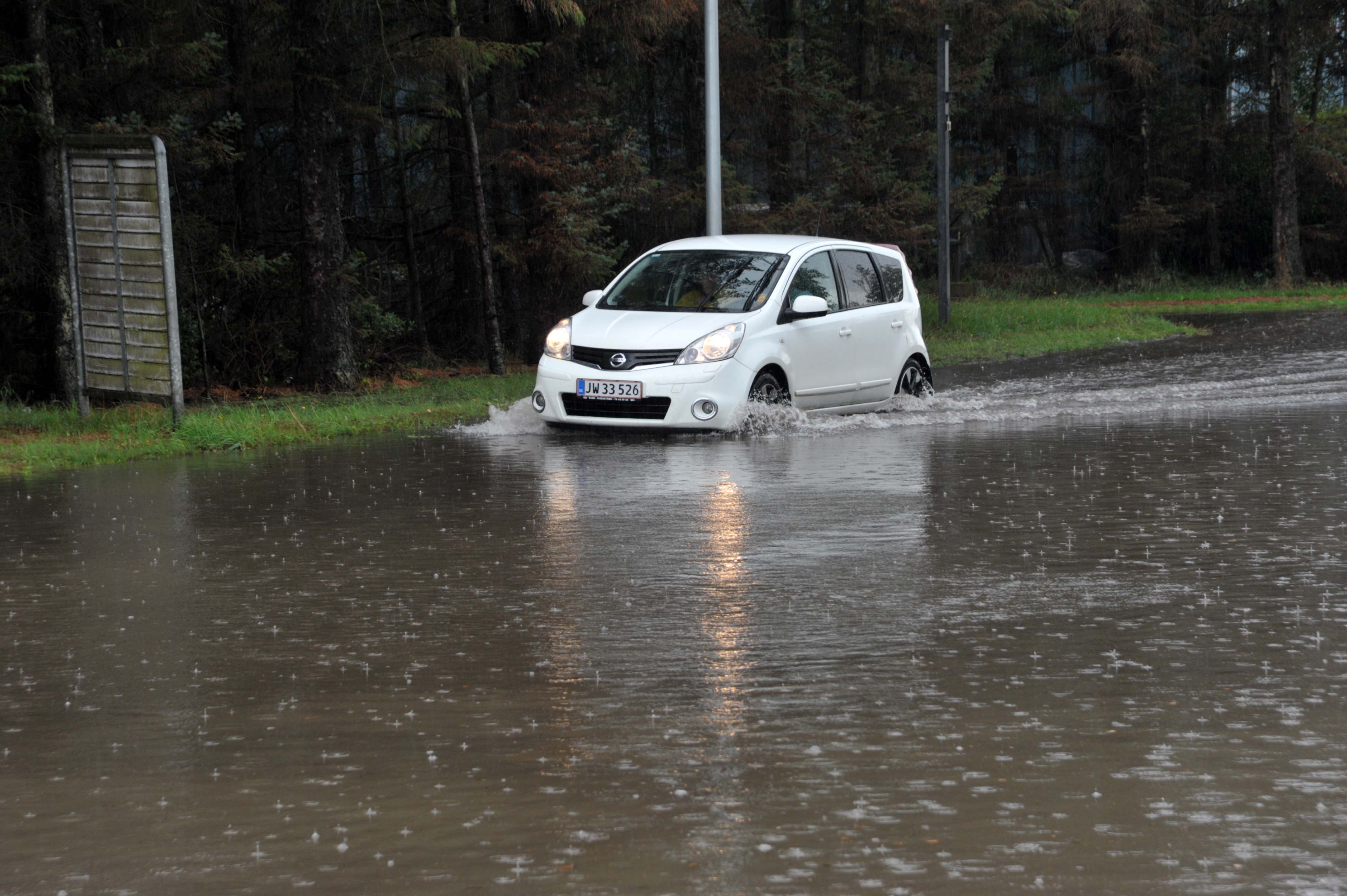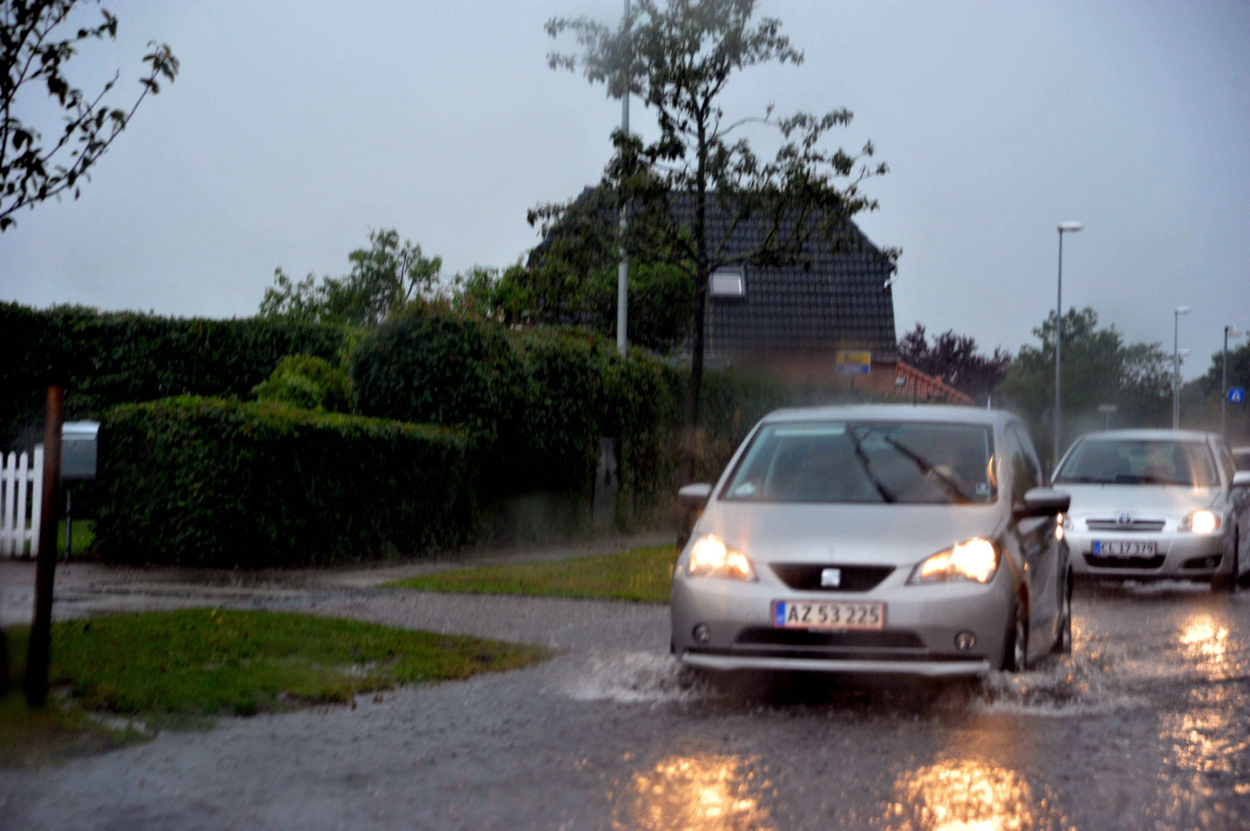 En beboer på Nørremarksvej fortæller, at i den første time fik de 55 mm vand, så ikke noget at sige til at bilerne måtte passere vejen med forsigtighed.
