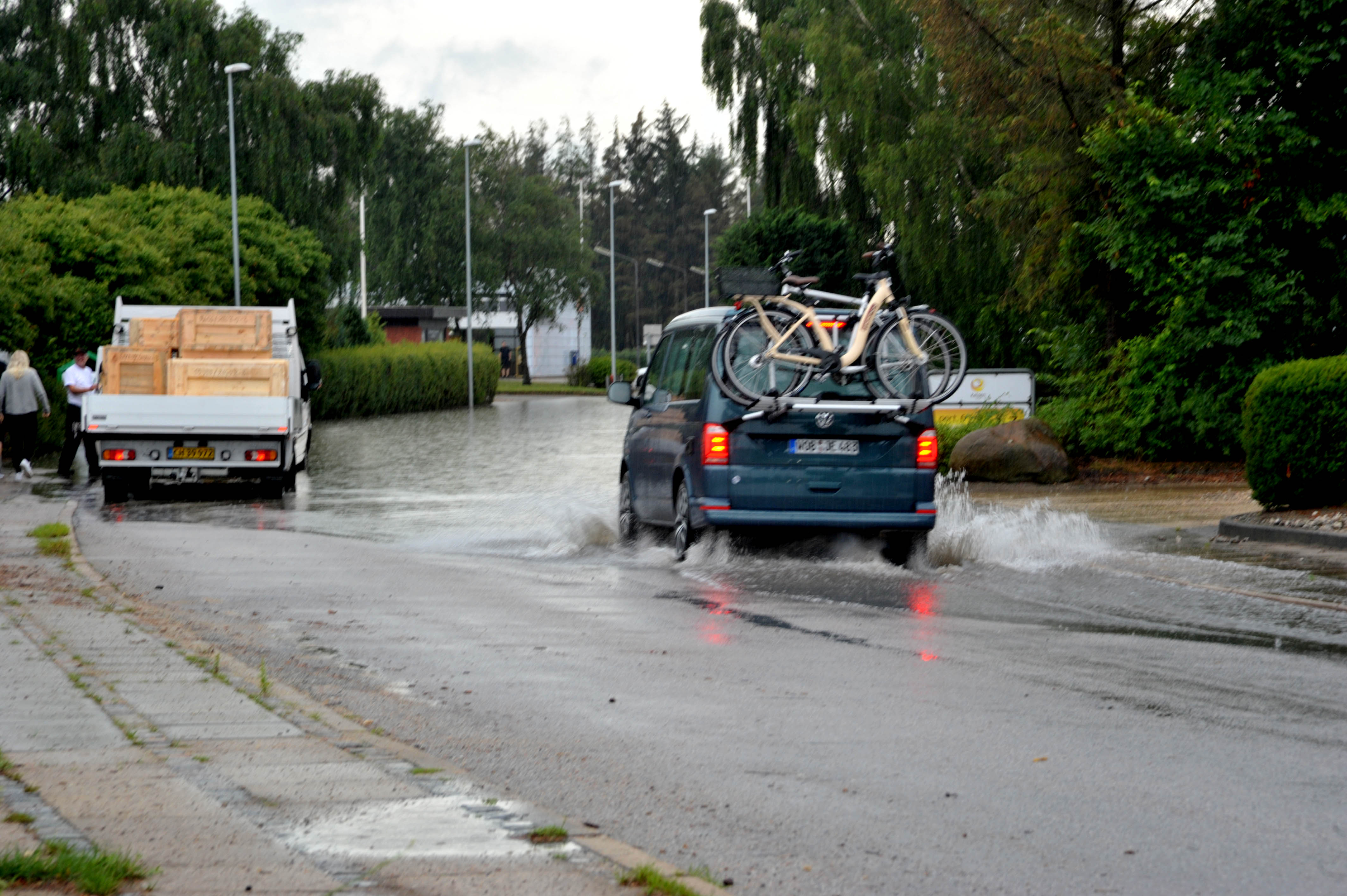 En beboer på Nørremarksvej fortæller, at i den første time fik de 55 mm vand, så ikke noget at sige til at bilerne måtte passere vejen med forsigtighed.