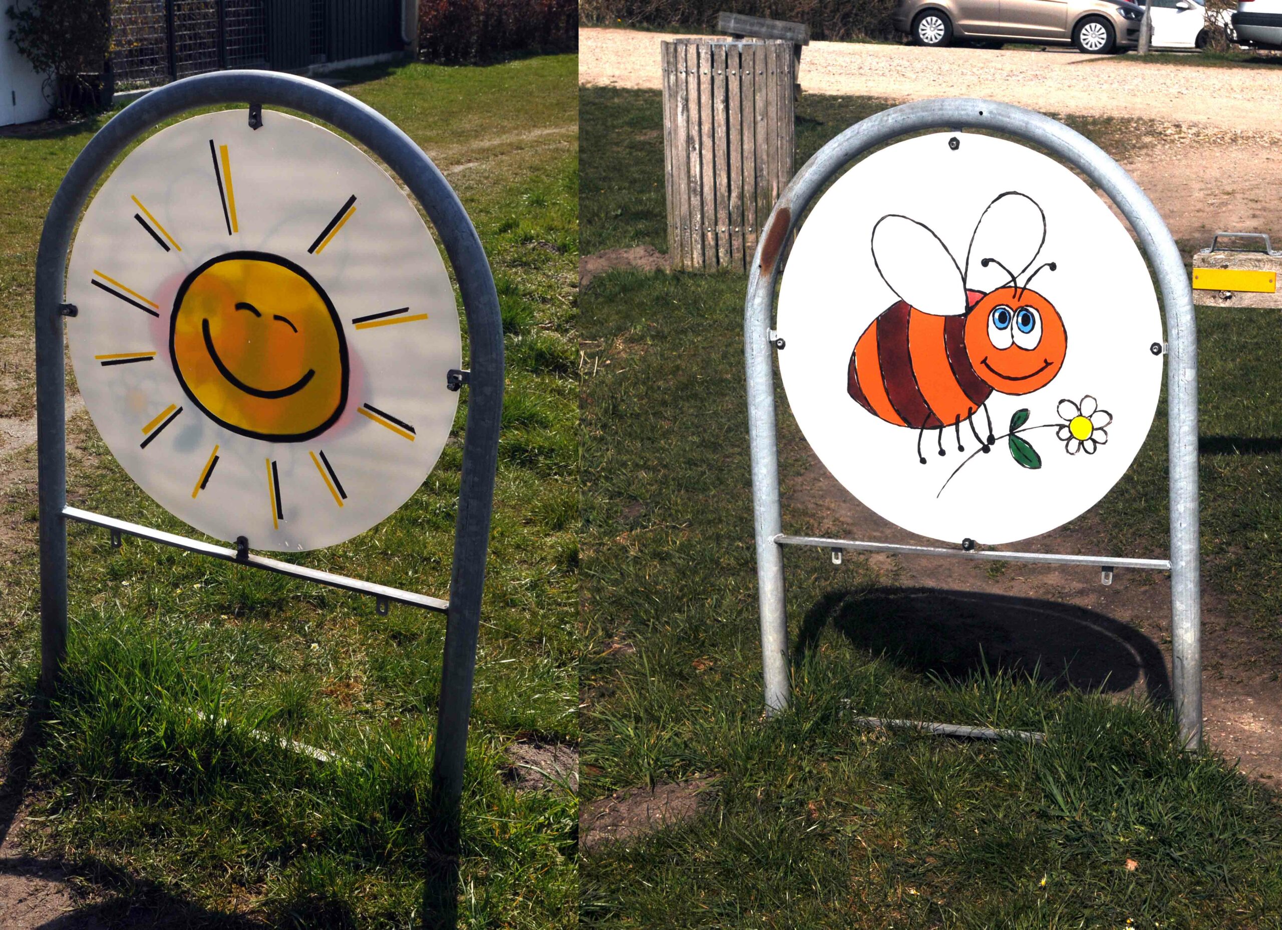 Så er det noget nemmere at få smilet frem, når man ser de nye skilte ved Slotsbanken: En bi på et skilt og en anden med en sol. Dejlige symboler, men hvad betyder de? – måske en af RYK IND RIBEs læsere kan hjælpe?