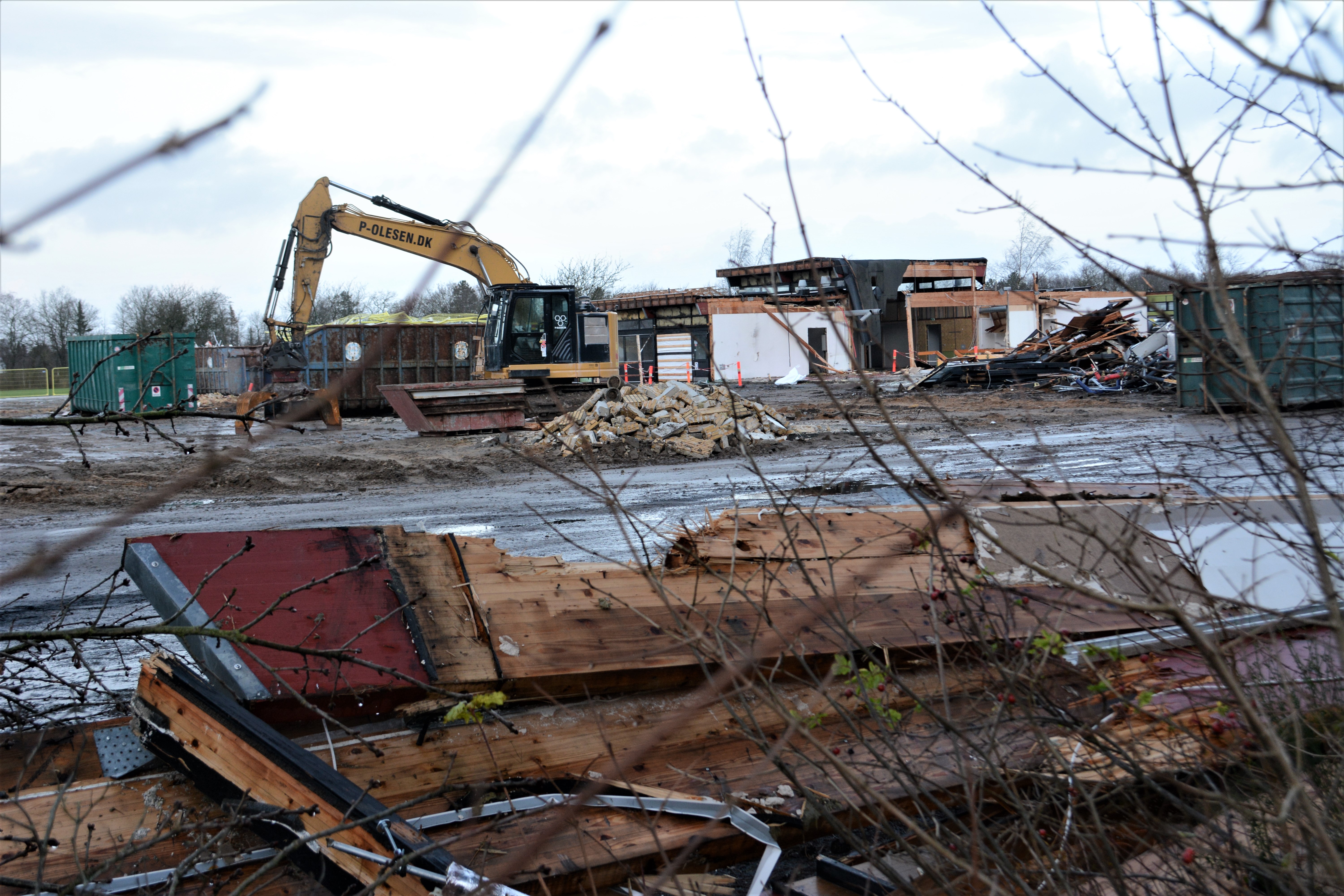 Entreprenørmaskinerne har været hårde ved den gamle skole, der blev bygget i 70’erne. Det er langt det mindste af bygningsmassen, der stadig står tilbage, og når vi når julen, vil kun den gamle sportshal og klubhuset bag ved, være intakt. Resten vil være jævnet med jorden efter en bestemmelse truffet af byrådet.