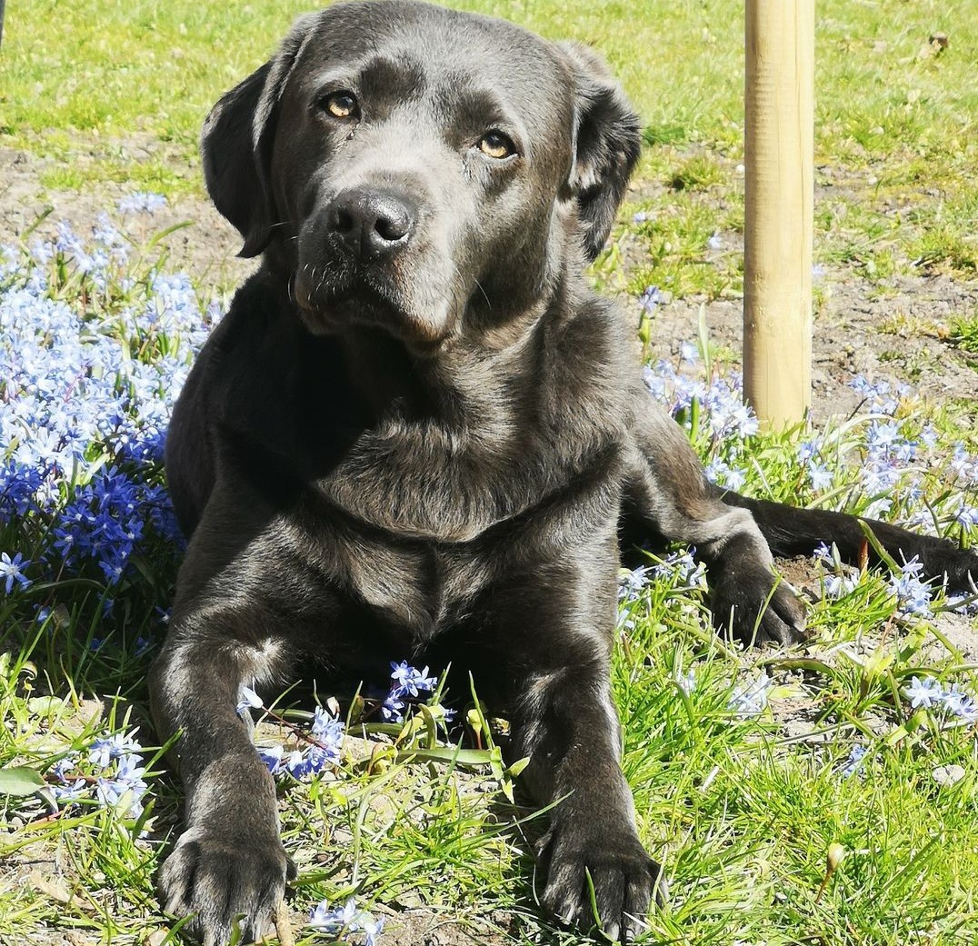 Pernille får en god snak med Cassi, mens en anden labrador ligger og ser på