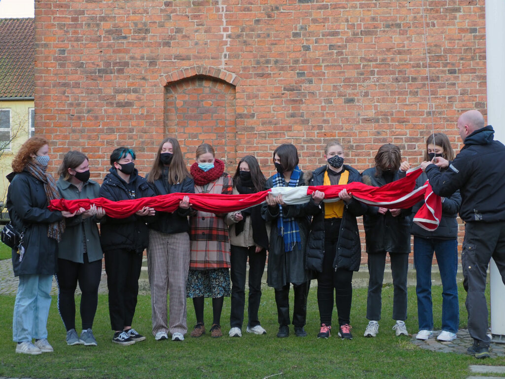 Og en festdag var det, da flaget gled til tops i et vejr, der med lidt god vilje mindede om det tilstundende forår og dermed bedre tider. Og flaget blev netop hejst for at markere bedre tider. Det var nemlig markeringen af, at eleverne nu i større eller mindre omfang må vende tilbage til den gamle skole efter corona-nedlukningen.