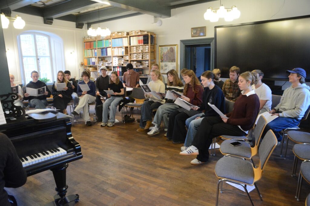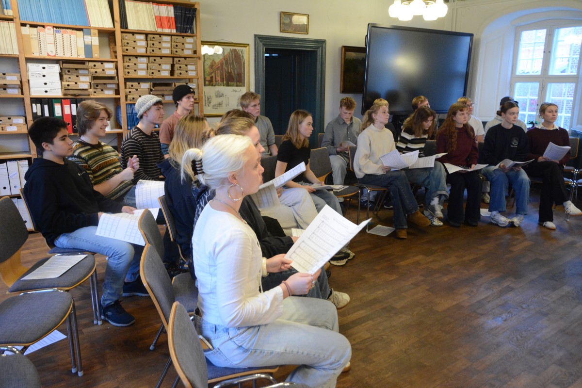 Det er ungdomskoret og pigekoret, der giver koncerten tirsdag aften, og forberedelserne har stået på i nogen tid dels i domkirkens øvelokale i stueetagen på Porsborg, og dels i Rued Langgaard Salen i Kannikegården.