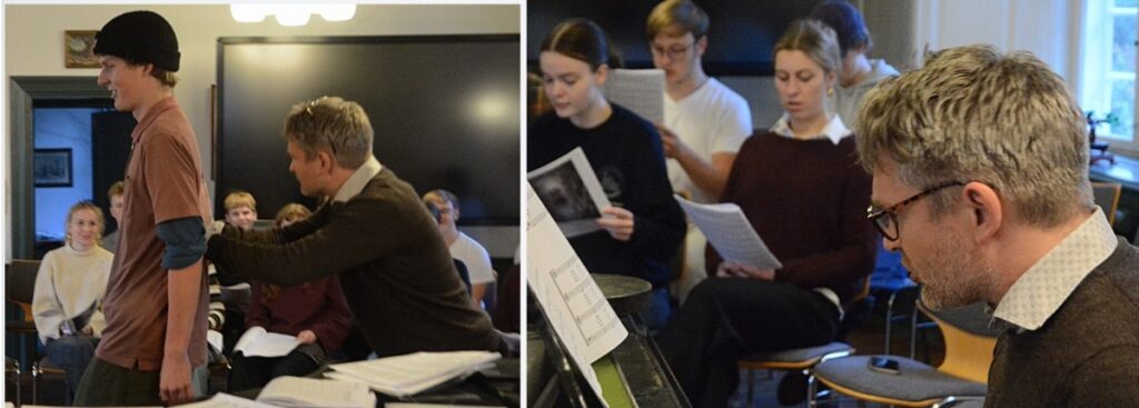Men der synges ikke kun. Jonas Hunt forklarer og demonstrerer, hvordan de unge mennesker lærer at kontrollere vejrtrækning, puls og hvordan stemmen udnyttes bedst muligt. De unge mennesker går med energi og dedikation til opgaven, og at dømme efter de sange, din udsendte hørte prøver på, bliver der tale om en virkelig god oplevelse tirsdag aften