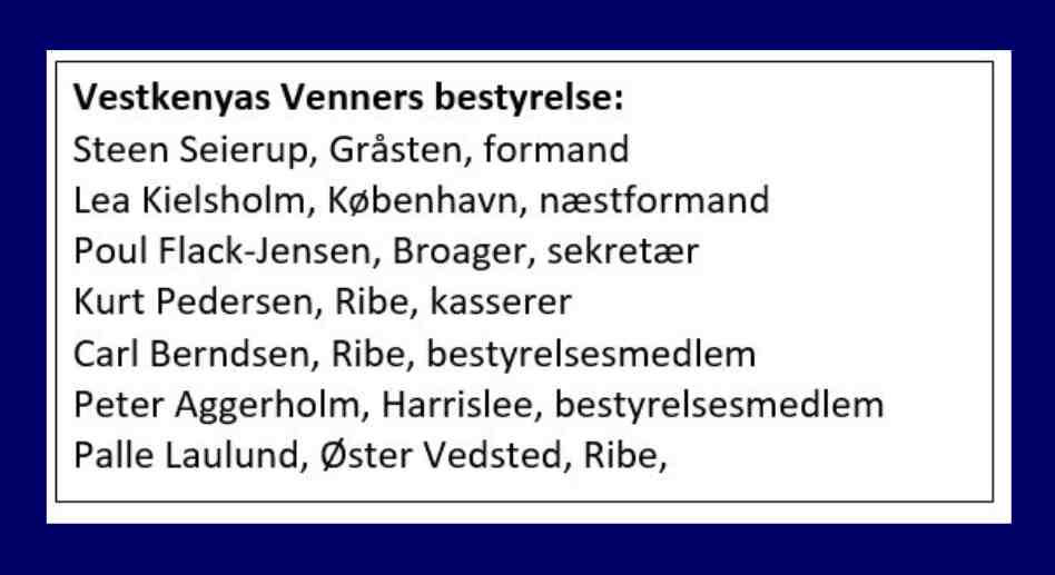 – Vestkenyas Venner har igen inviteret Peter Okoyo Owe fra landsbyen Asembo i Vestkenya til Danmark, fortæller kasserer Kurt Pedersen til RYK IND RIBE. Han oplyser videre, at Mornica Saida, som er leder af den nystartede skole i Asembo, også er med på turen, hvor de to afrikanere sammen med Vestkenyas Venner vil besøge seks folkeskoler og to gymnasier i Danmark og en enkelt skole i Flensborg. Besøget finder sted i perioden 31. oktober – 18. november.