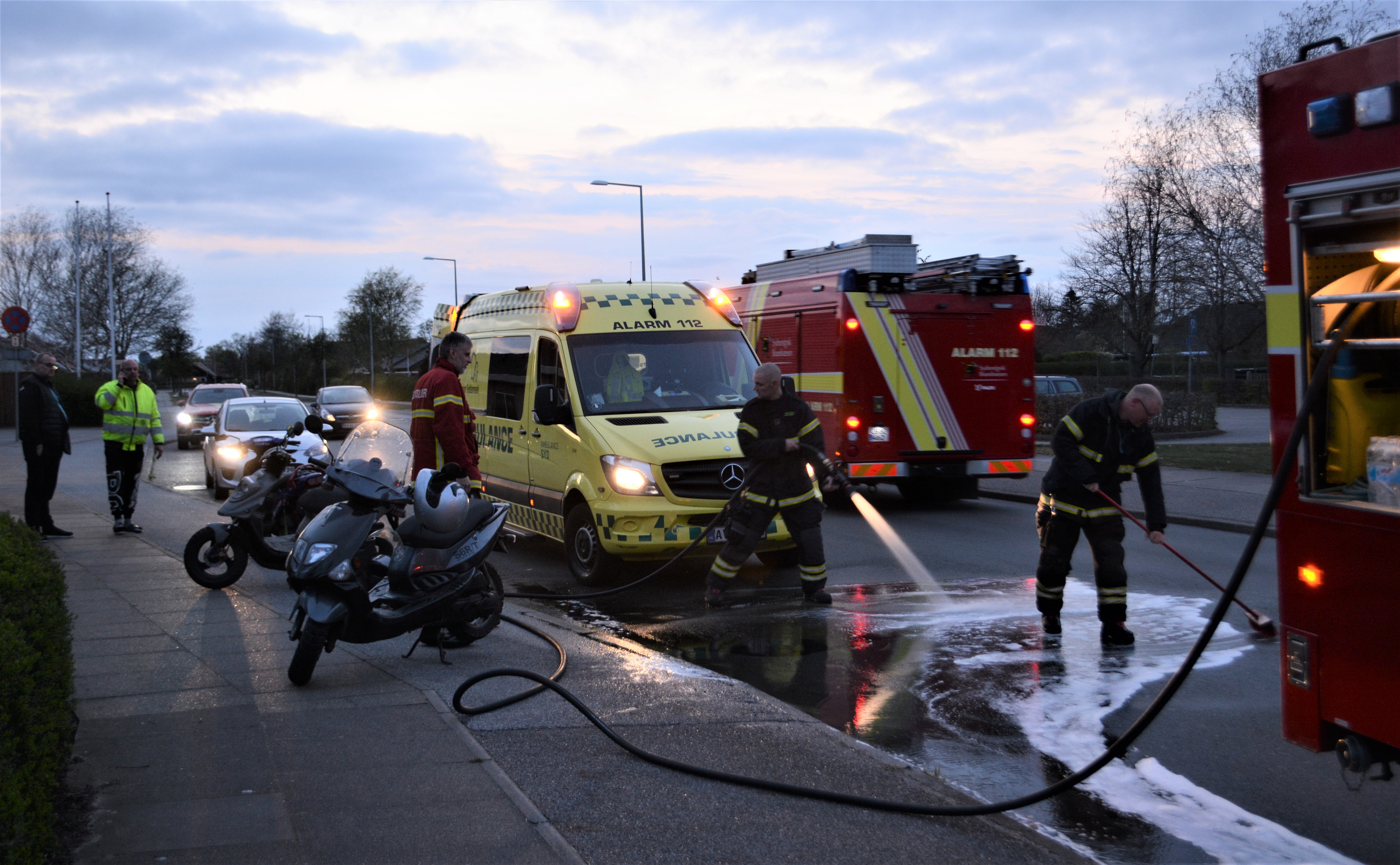 Uheldet medførte, at flere liter benzin sprøjtede ud fra de to knallerter, og Sydvestjysk Brandvæsen i Ribe sørgede for, at vejbanen blev renset, så den ikke var glat og dermed til fare for de øvrige trafikanter.