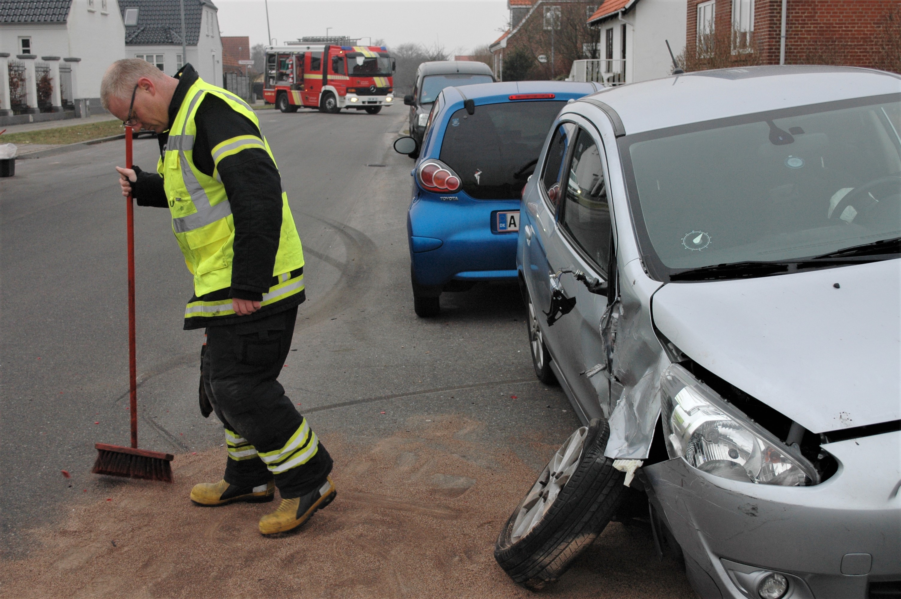 Ingen personer kom noget til, men der skete en del materiel skade på tre biler ved et færdselsuheld fredag middag på Seminarievej.