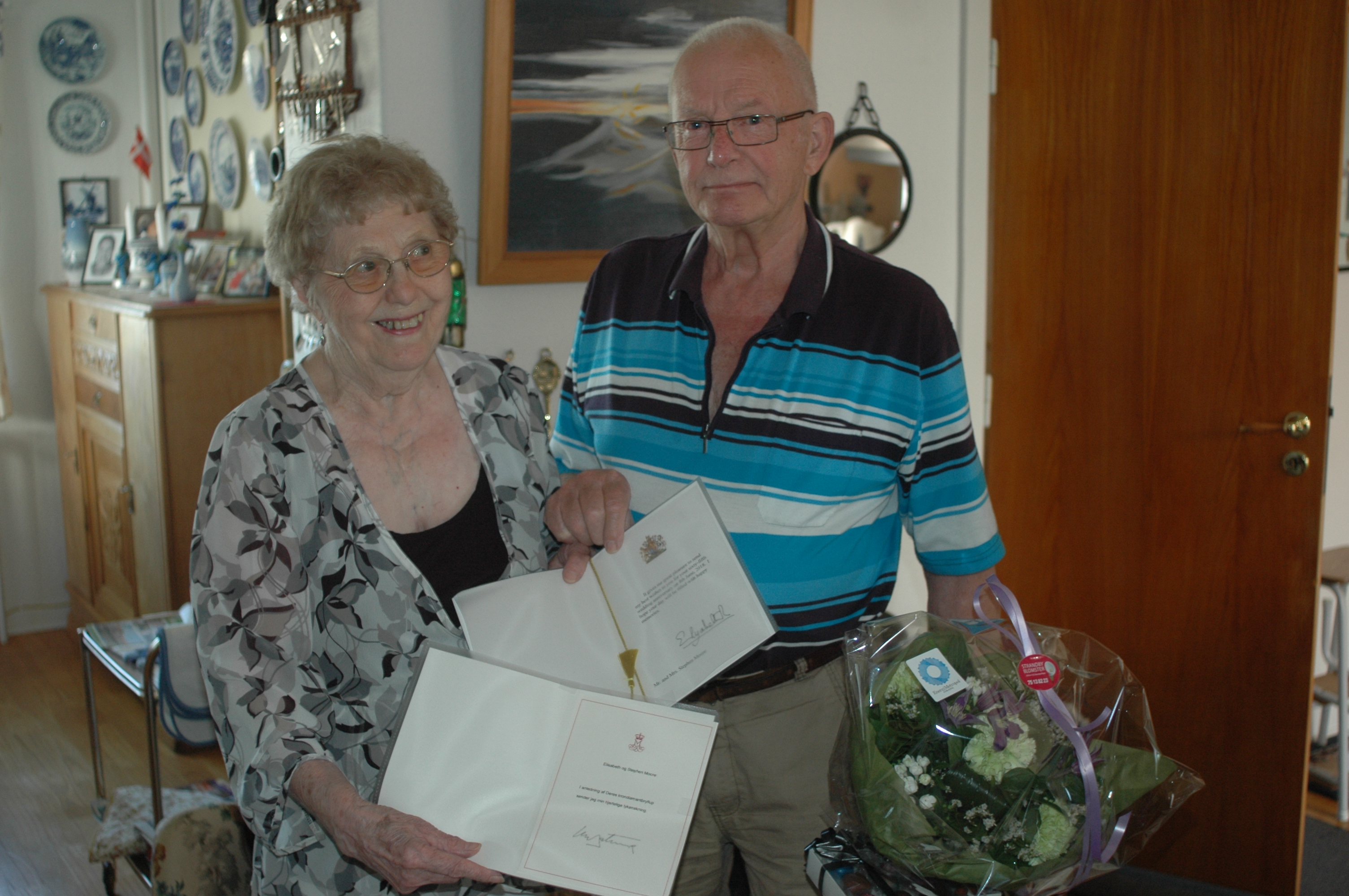 Krondiamantbrylluppet bliver fejret med familie og venner, men ikke nok med det. Ikke alene overbragte byrådsmedlem Alex Sørensen, St. Vodder, en hilsen fra borgmester Jesper Frost Rasmussen, men der var også hilsen fra to regerende monarker.