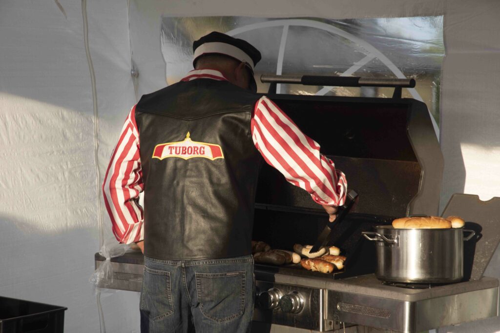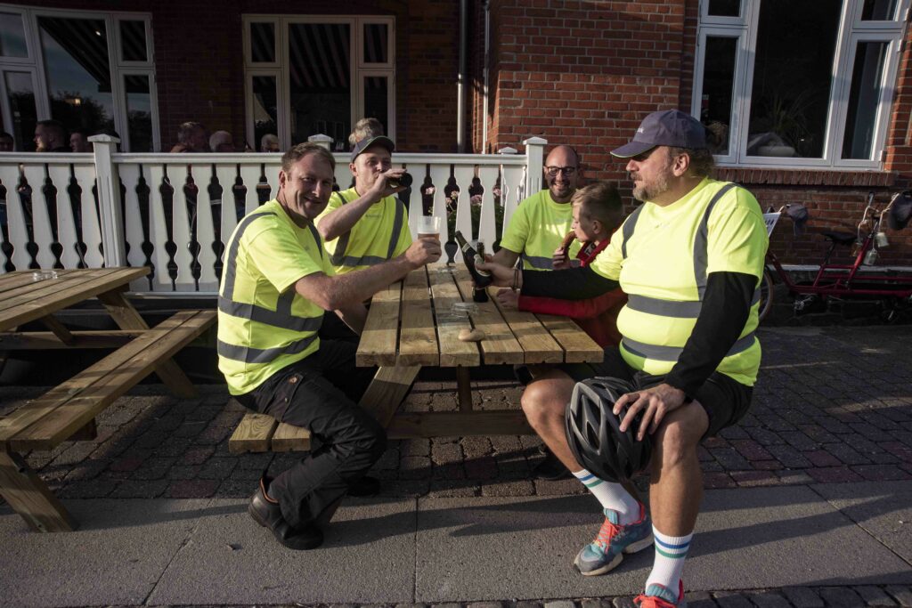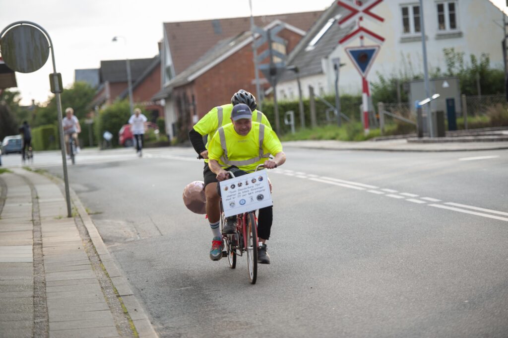 Det var ham, der tog initiativet til, at cykelløbet skulle starte fra Gredstedbro Hotel, hvor Aage også boede og gik og plejede området. Den tidligere mejerist ville støtte byens foreninger og skabe et sammenhold, og det må man sige er lykkedes. Aftenens opbakning var stor! Der var god støtte rundt ved bordene ved hotellet og foran teltet, hvor der blev solgt øl, vand og pølser.