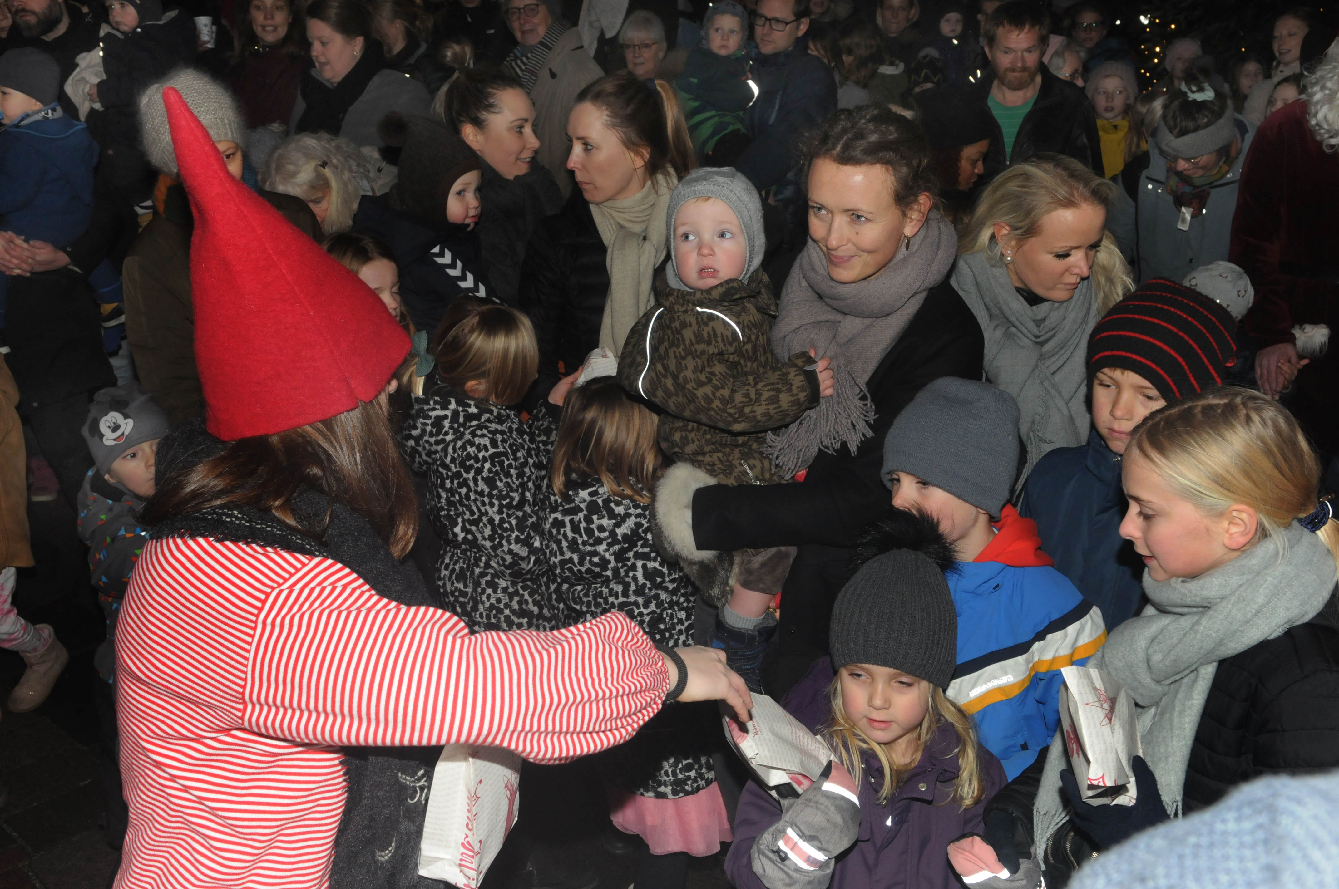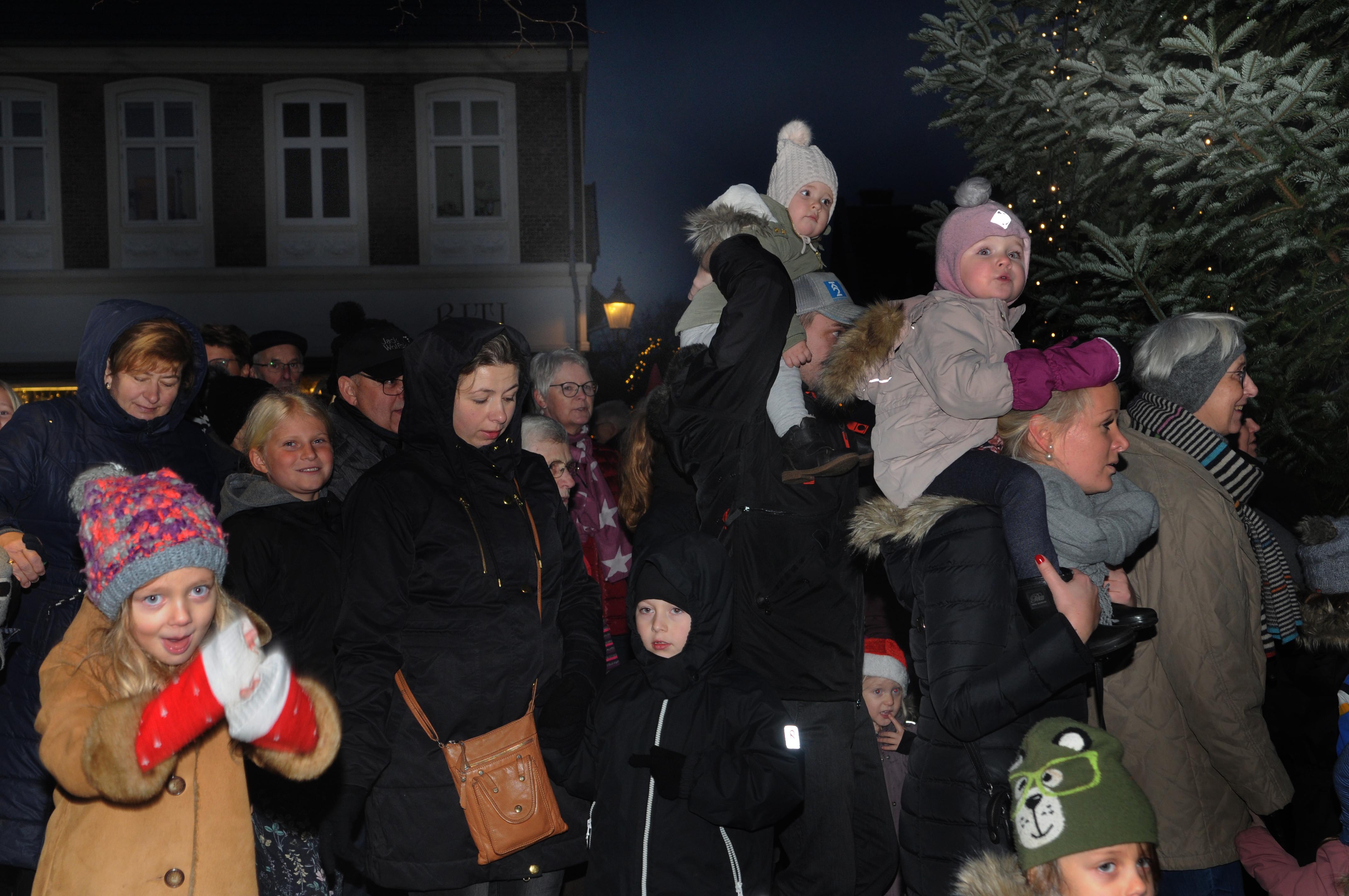 I dag er juletræet og dermed festen rykket ned i nærheden af domkirken på dennes nordside, og der er så mange mennesker, at de kan danne både fire og fem store kredse om træet.
