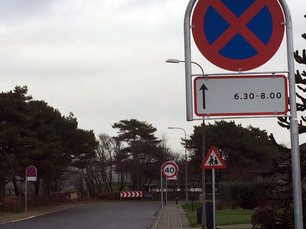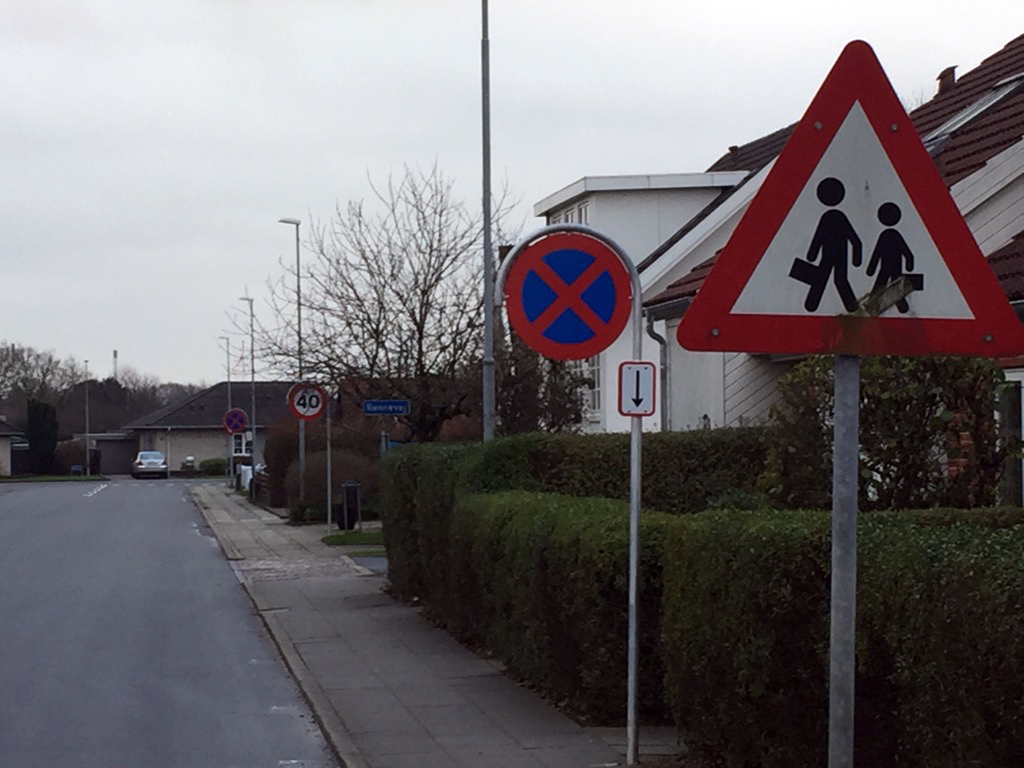 Rundt om Fourfeldtskolen i Esbjerg har man på Sdr. Fourfeldtvej, Huginvej og Nordre Fourfeldtvej valgt at sikre skolevejen ved at trafikregulere, så forældrene ikke kan standse deres biler og aflevere børnene på fortovene med den kortest mulige gåafstand til skolen. Der er ikke kun parkeringsforbud – med både standsning og parkeringsforbud om morgenen, der er også fartbegrænsning og en del skilte på de tre villa veje.
