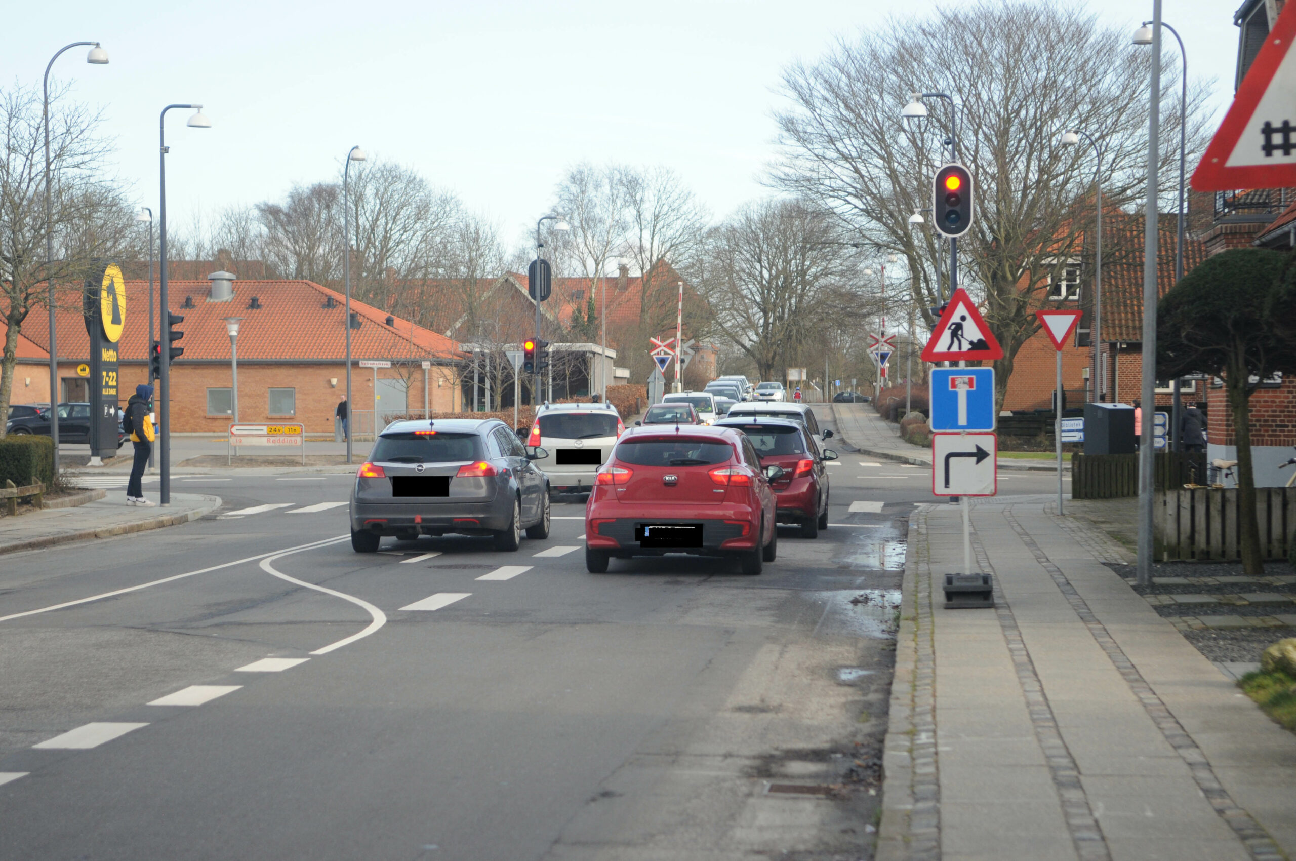 Køen af biler voksede gevaldigt onsdag eftermiddag. Lyskurven var rød fra alle sider, og det skabte lange køer. Normalt ville flere biler vende om og tage overskæringen på Tangevej, men den har nu været lukket i mere end et år.