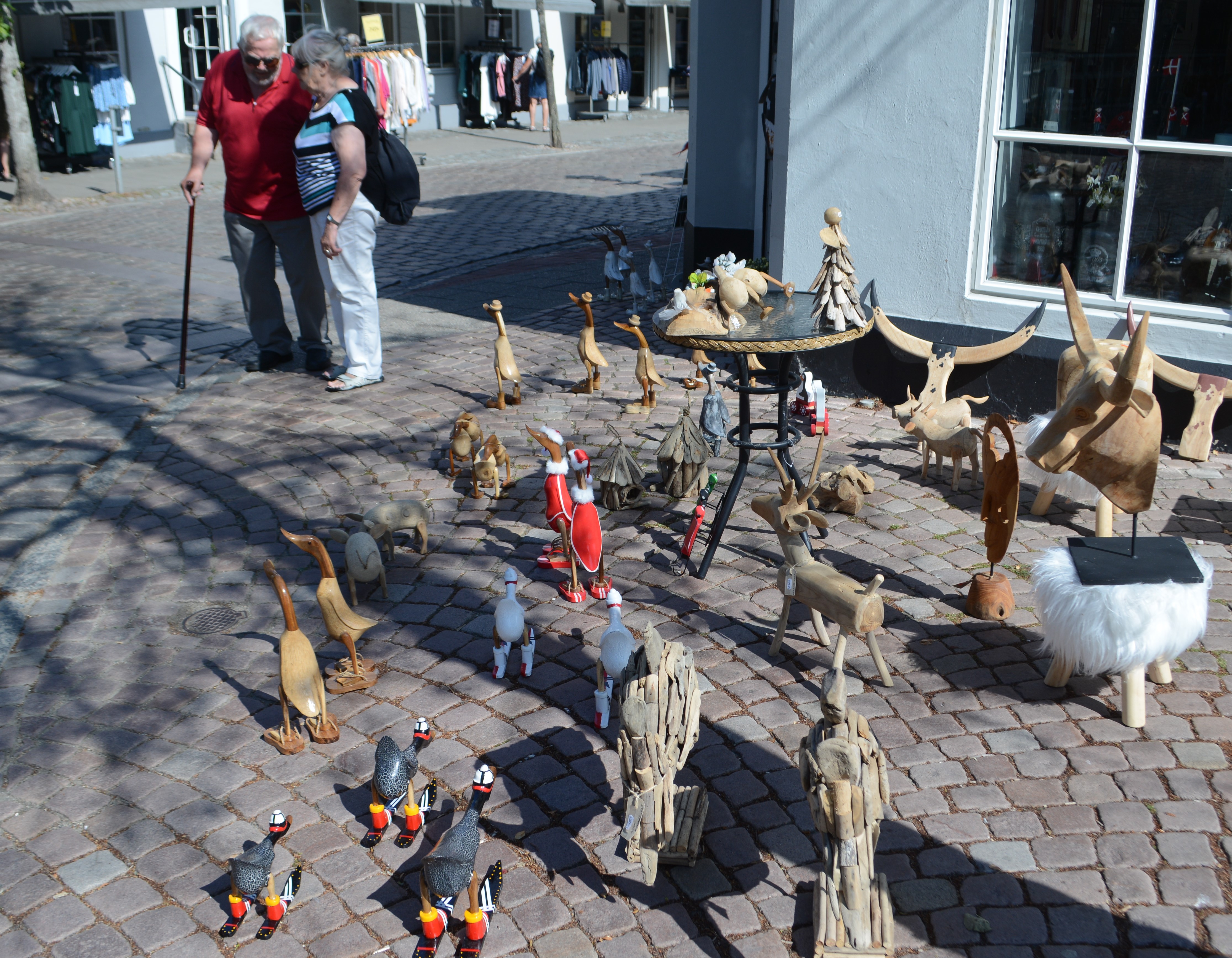 Det er butikken Dream Art i Saltgade, der er begyndt forhandlingen af eksotiske dyr, og de går som varmt brød. ”Dyrene” i form af træfigurer er udstillet foran forretningen, og de giver anledning til mange morsomme kommentarerer fra forbipasserende, og ikke nok med det: de bliver solgt i en lind strøm.
