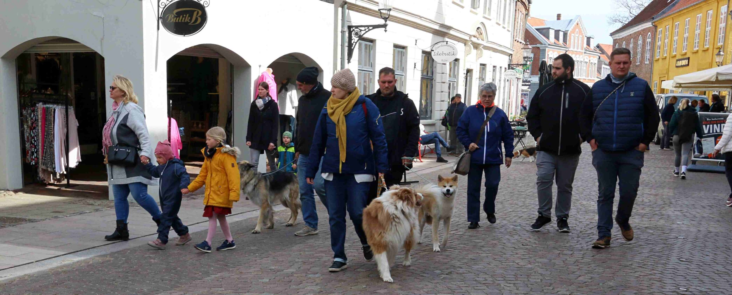 På strøget var der mange gæster – og snakken gik livligt på tysk, mens flere familier med hunde bevægede sig frem mod Domkirkepladsen.