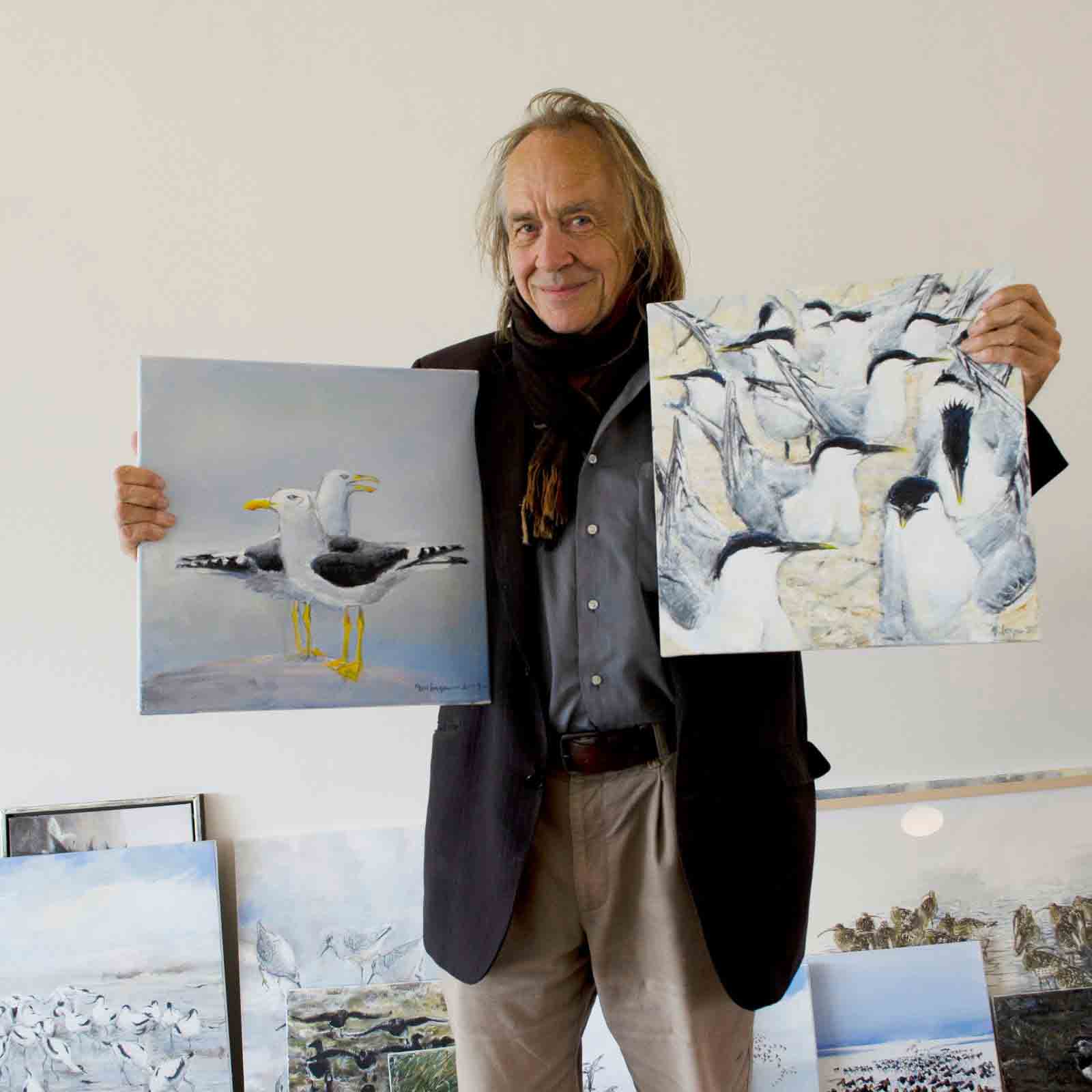 tegner og forfatter, Jens Gregersens værker med Vadehavets dyreliv. Billederne kan købes ved besøg i Vadehavscentret, hvor man foruden kan købe et udvalg af hans bøger: Årets Ring og Det Store Vadehav.