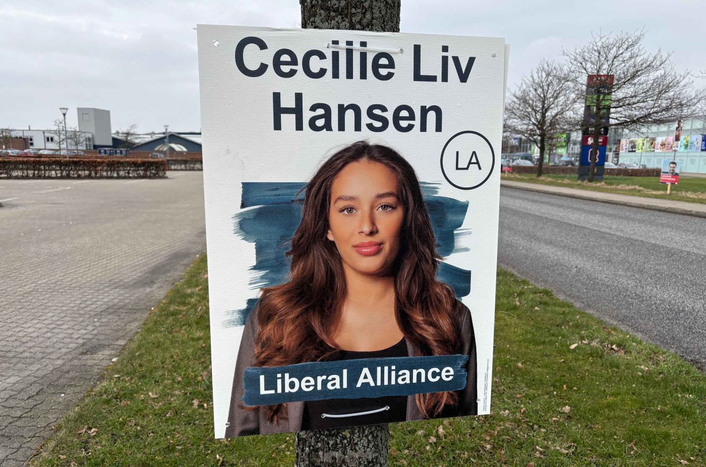 Et par smågrinende unge drenge vakte forleden opmærksomhed på Dagmarsbroen i Ribe, da de gik af sted med en valgplakat forestillende Liberal Alliance-kandidaten Cecilie Liv Hansen.