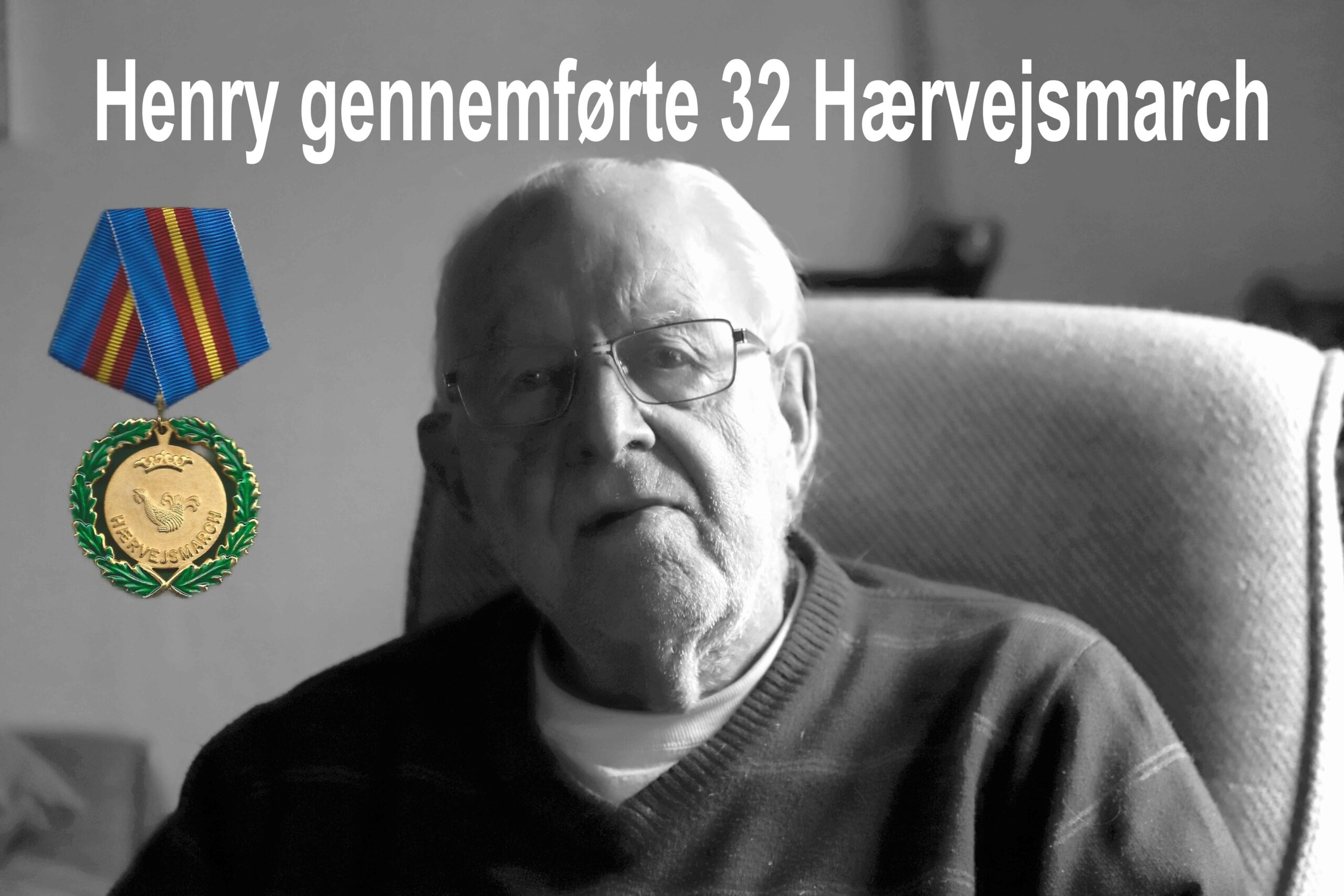 Begejstringen for at være i naturen udmøntede sig i to slags march – og lad os starte med den danske. – Jeg har haft en utrolig tålmodig kone, som gav mig tid og plads til år efter år at deltage i Hærvejsmarchen ved Viborg, fortæller Henry, der nåede at deltage på turene i 32 år.