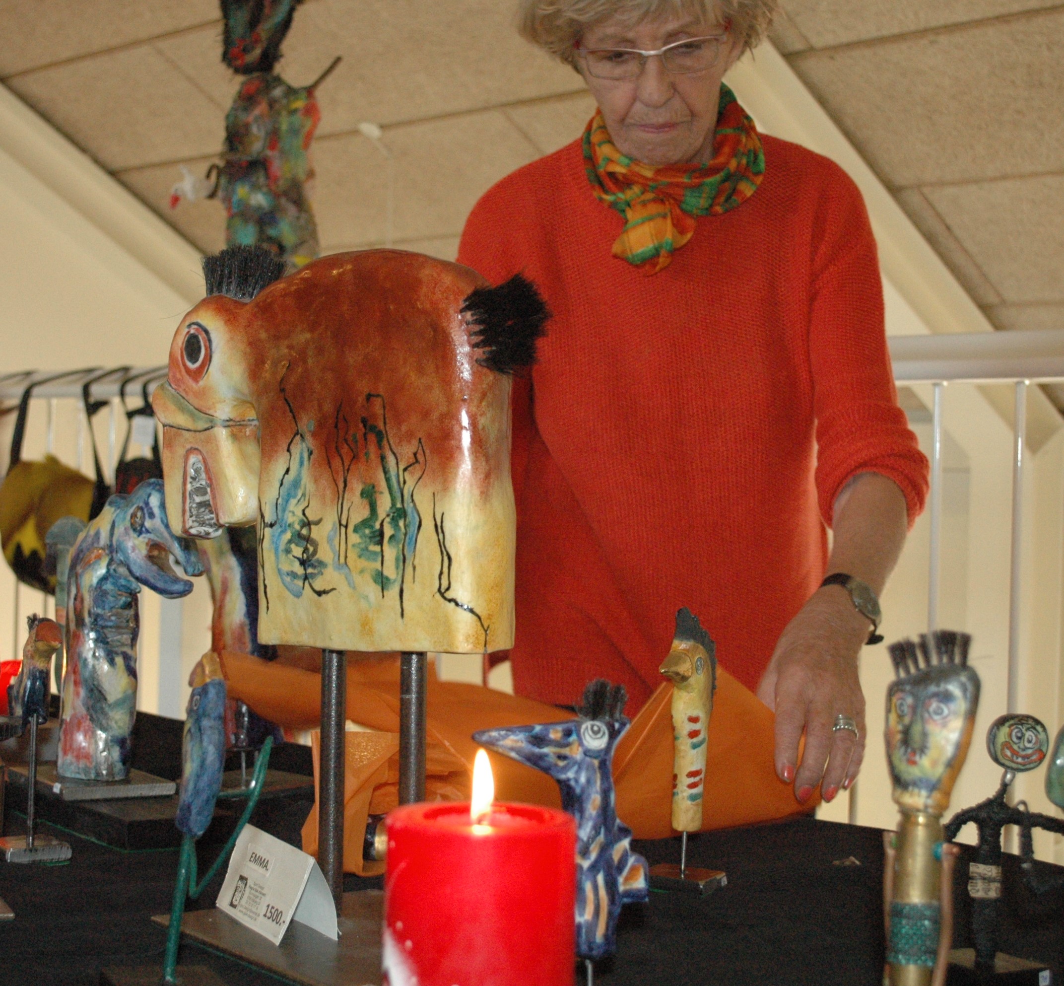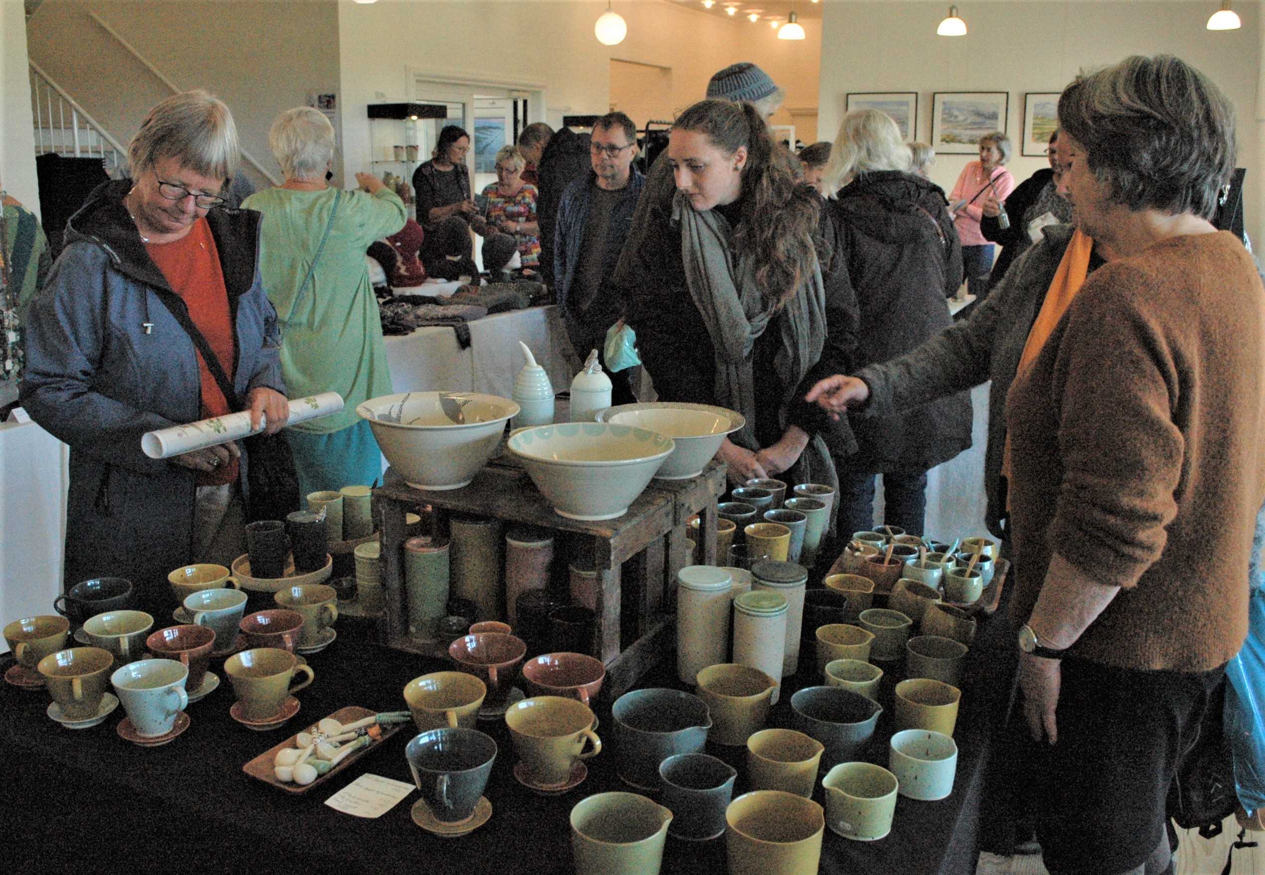 Selv udstillede Bettina Holmquist strikvarer, og ud over det var der bl.a. keramik, glaskunst, vævede ting, ting i sælskind, akvareller og papirkunst.